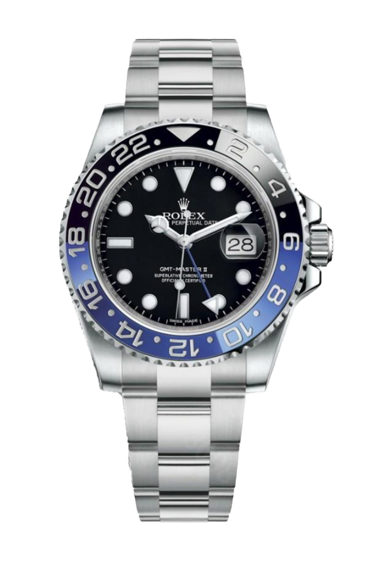 The Rolex GMT-Master II 116710BLNR, affectionately known as the "Batman," became an instant favorite among collectors when it debuted in 2013. It was the first Rolex GMT-Master II to feature a two-tone ceramic bezel, with a striking black and blue Cerachrom insert. The color split was not just for aesthetics—it served a practical function, visually distinguishing between daytime and nighttime hours when reading a second time zone. This combination of colors quickly became iconic, setting the Batman apart from other GMT models and solidifying its place in Rolex’s history.