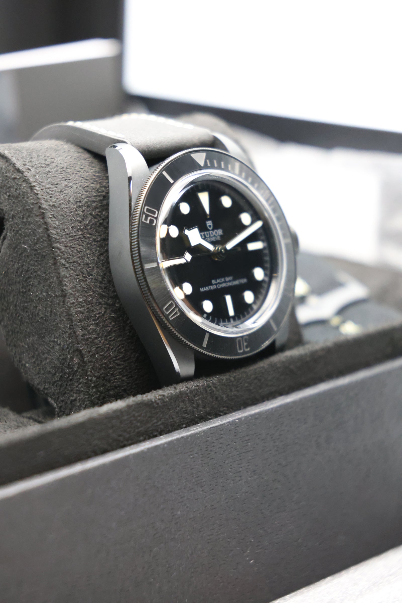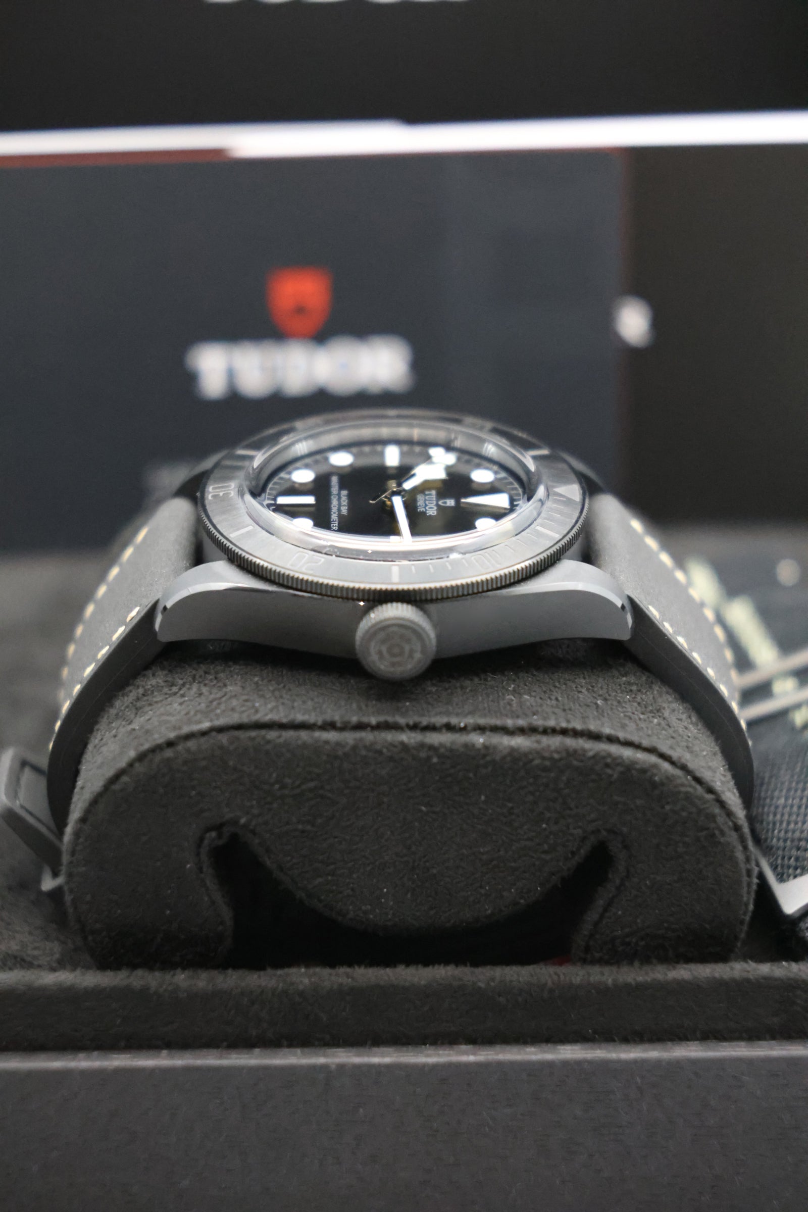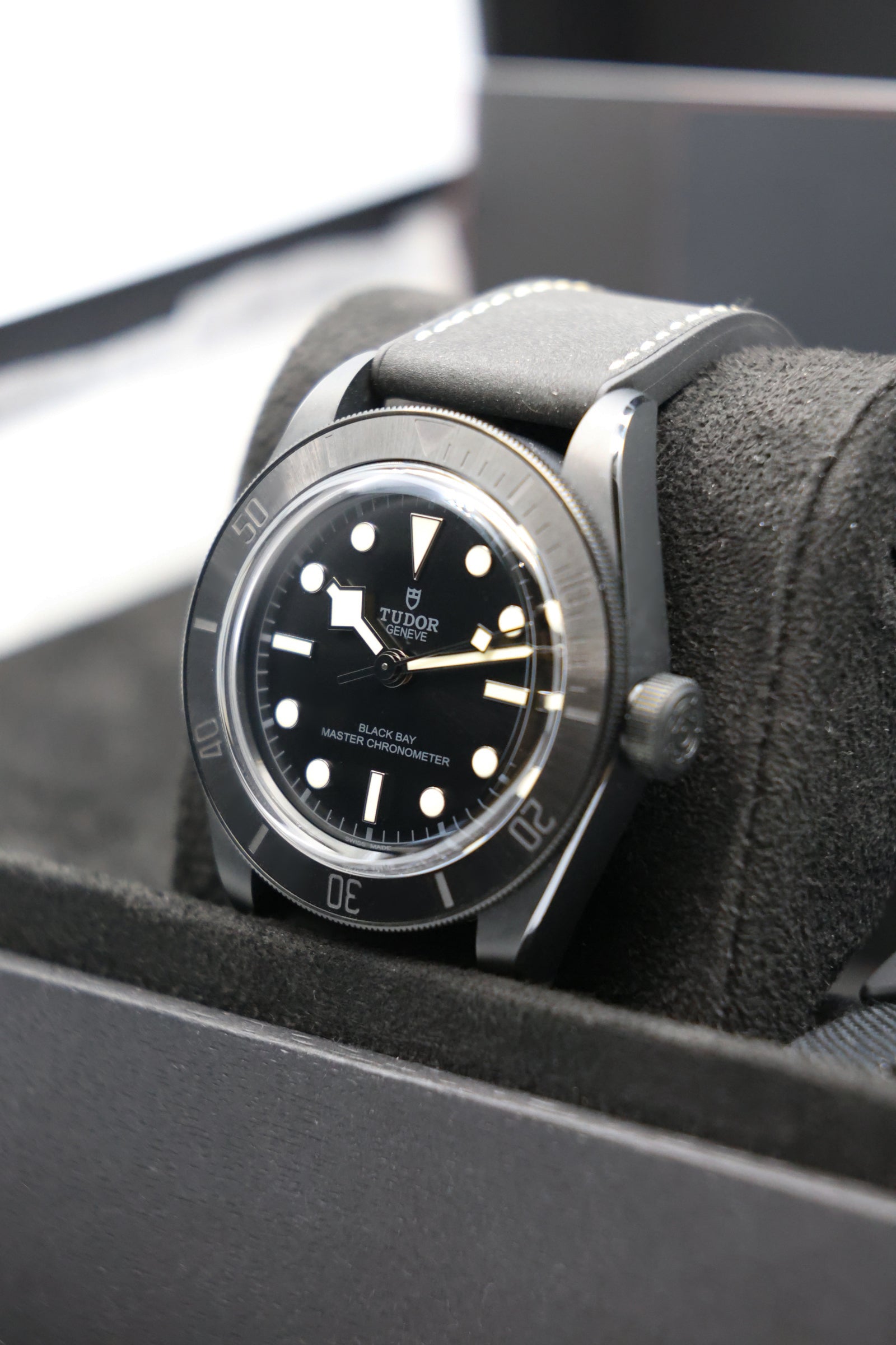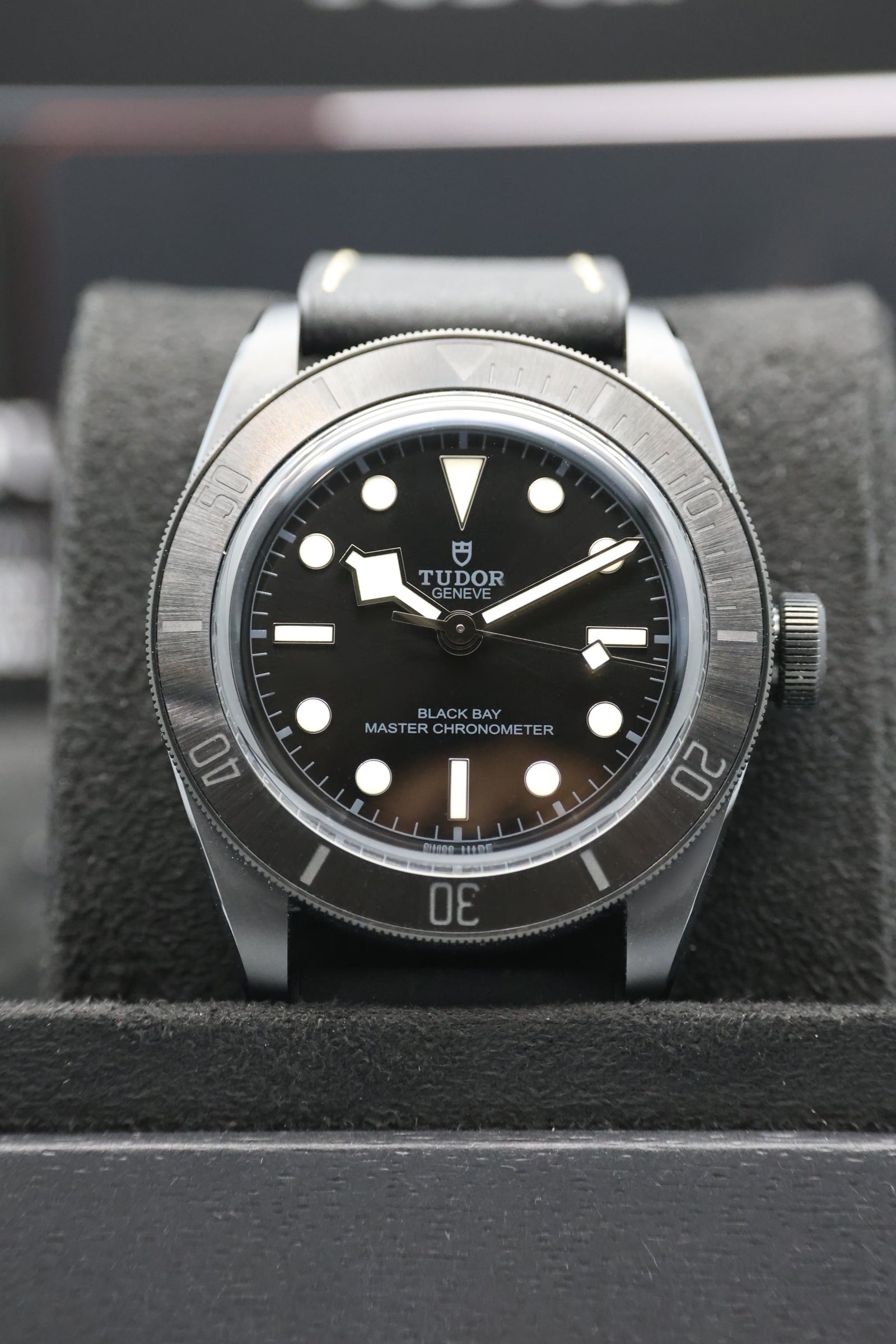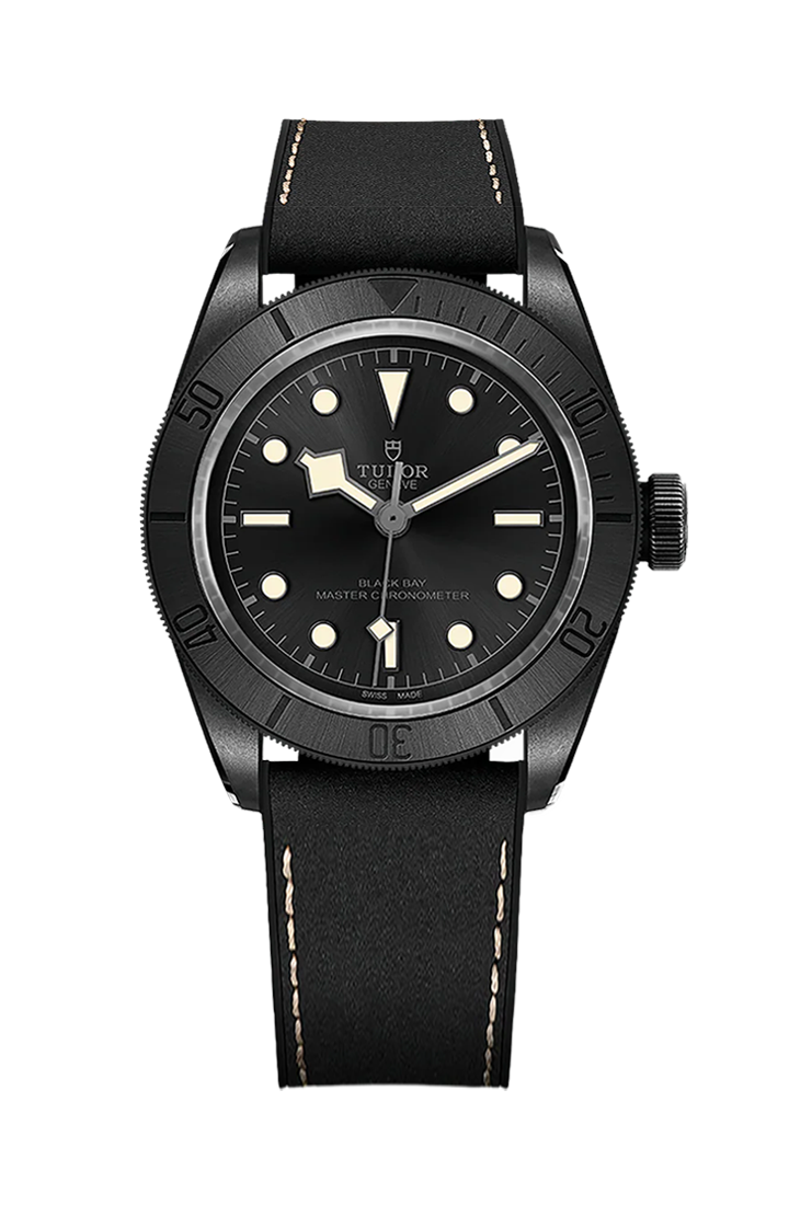 The Tudor Black Bay 41 Ceramic 79210CNU is a bold expression of the brand's commitment to innovation and design. Introduced as a modern interpretation of the Black Bay collection, this model stands out with its sleek and stealthy all-black ceramic case. The 41mm case is not only lightweight and scratch-resistant but also crafted with a matte finish that exudes understated elegance. Complementing the case is the unidirectional ceramic bezel with a 60-minute graduated scale, offering functionality and aesthetic harmony with the overall monochromatic theme.