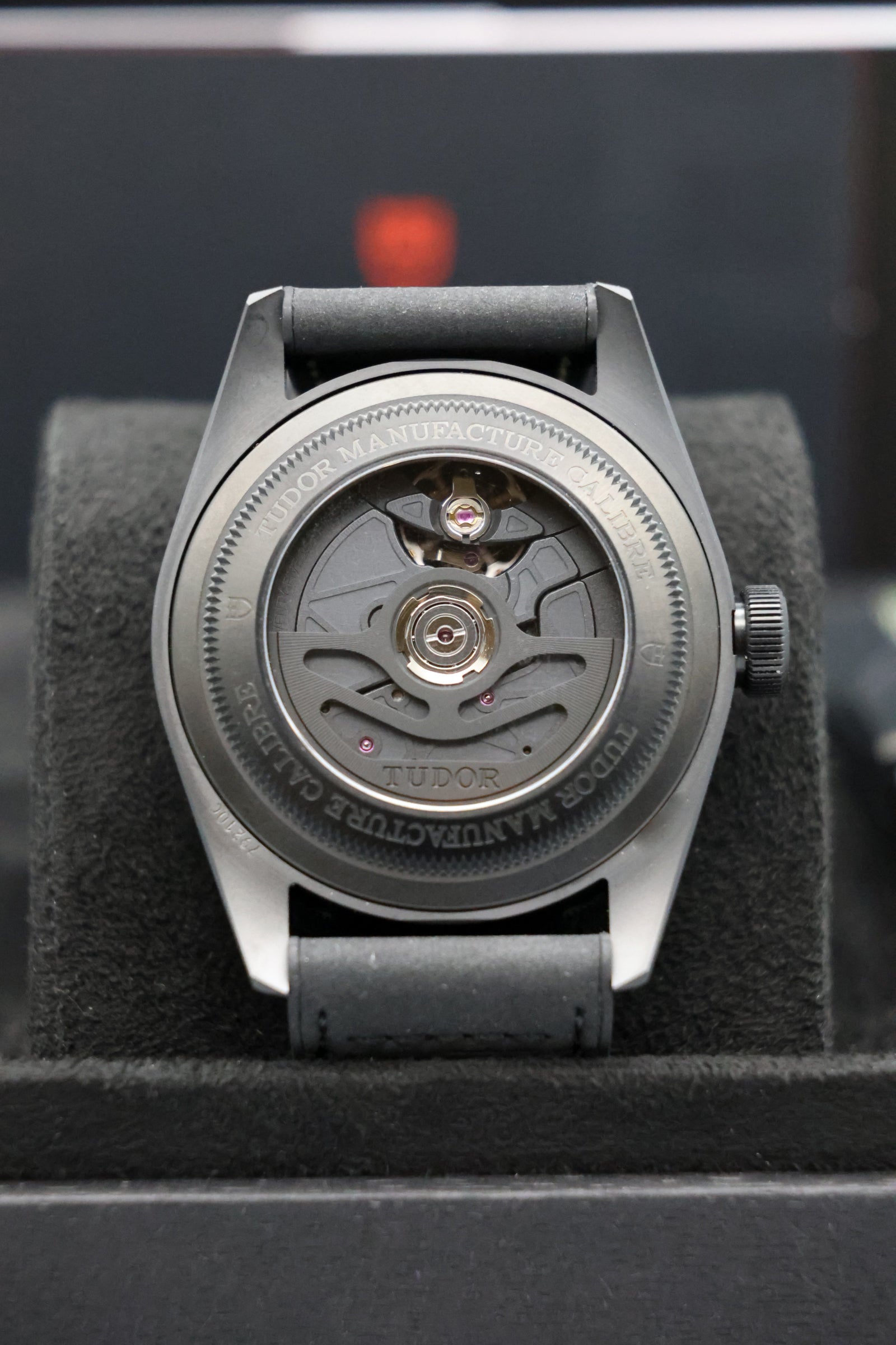 At its heart, the Black Bay 41 Ceramic is powered by the COSC-certified MT5602-1U movement. This in-house caliber is an impressive technical achievement, offering a 70-hour power reserve and exceptional resistance to magnetic fields. The movement also carries METAS Master Chronometer certification, a rarity in the Tudor lineup, showcasing the brand's dedication to precision and performance. Visible through the sapphire case back, the movement’s blacked-out rotor reinforces the watch’s cohesive dark aesthetic.
