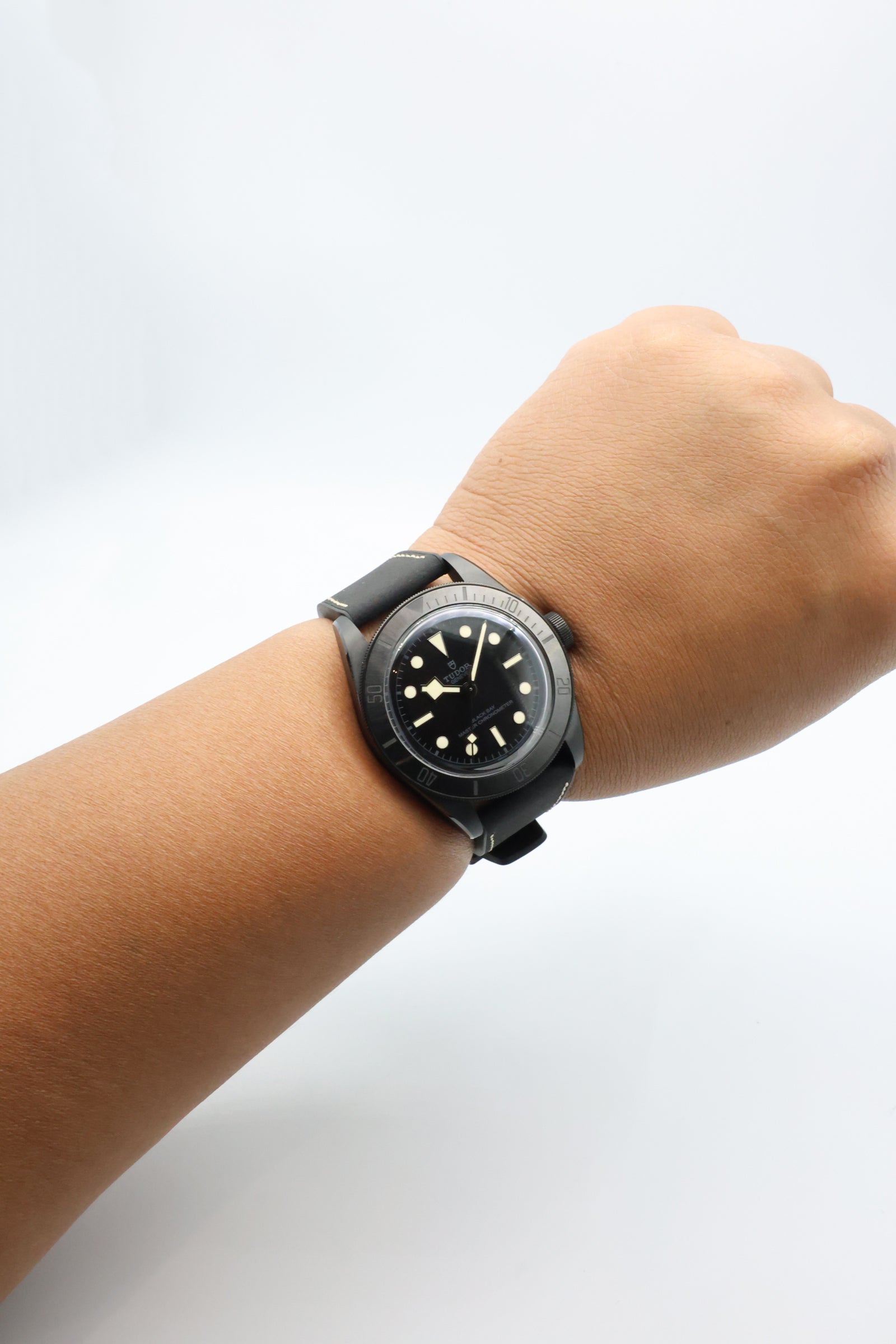 The Black Bay Ceramic comes fitted with a hybrid leather and rubber strap, adding to its sporty yet luxurious appeal. Designed for durability and comfort, the strap seamlessly integrates with the case to complete the watch’s sleek silhouette. Whether admired for its advanced materials, technical excellence, or distinctive style, the Tudor Black Bay 41 Ceramic 79210CNU is a testament to the brand’s ability to push boundaries while honoring its heritage.