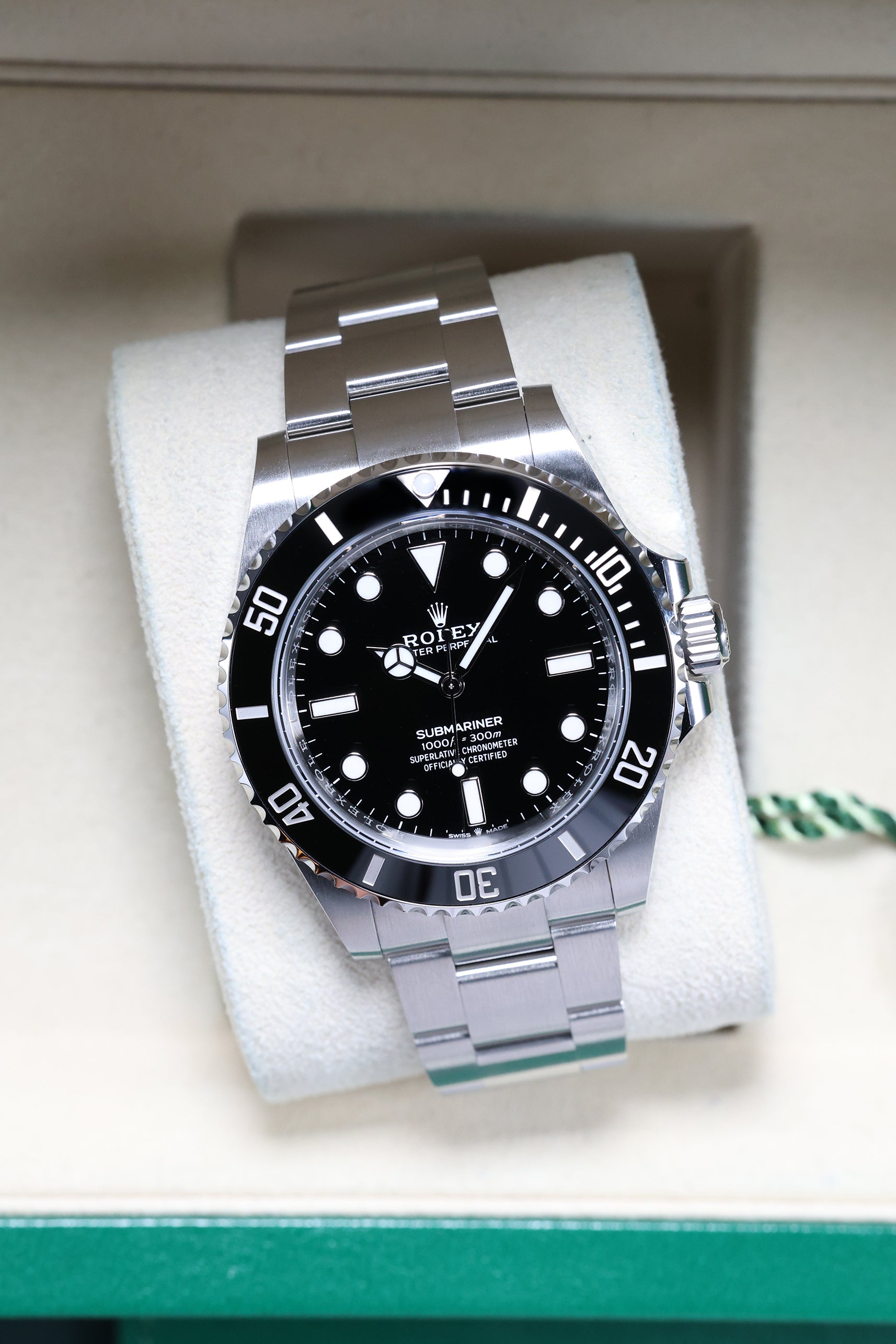 Beneath the surface, the in-house Calibre 3230 represents Rolex’s latest advancements in movement technology. While unseen, this movement boasts significantly improved power reserve, enhanced precision, and superior resistance to shocks and magnetic fields. The Submariner No-Date 124060 is a quintessential example of Rolex's dedication to refining a legend, ensuring it remains at the forefront of both style and performance in the world of luxury sports watches.