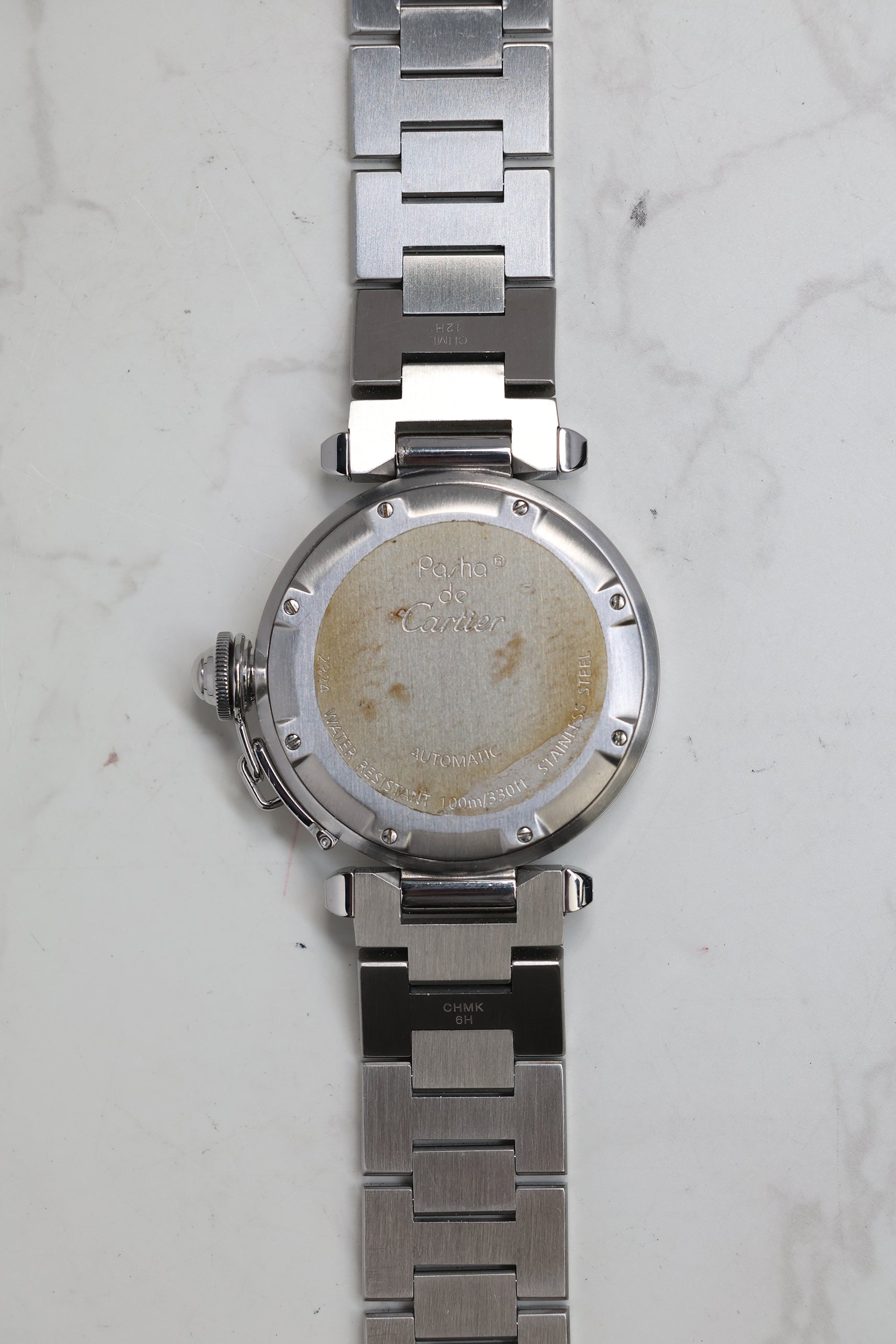 Completing the look is the integrated stainless steel H-link bracelet, which is as much a piece of jewelry as it is a watch strap. The brushed and polished finishes of the links harmonize with the case, while the hidden folding clasp ensures a seamless look. The Pasha C W31074M7 remains a favorite for collectors who find the Tank or Santos too traditional—it is a watch for those who value individuality, a touch of maritime history, and a design that refuses to play by the standard rules of horology.