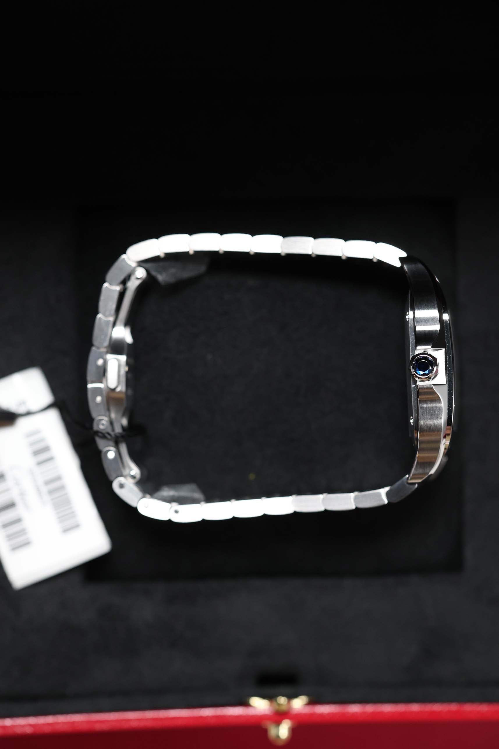 One of the watch’s most practical evolutions lies in Cartier’s QuickSwitch and SmartLink systems. Included are both a stainless steel bracelet and a supple leather strap—each easily interchangeable without tools—allowing the wearer to shift effortlessly between formal and relaxed modes. Whether paired with a tailored suit or worn beneath an open cuff, the Santos adapts to every setting with a quiet confidence.