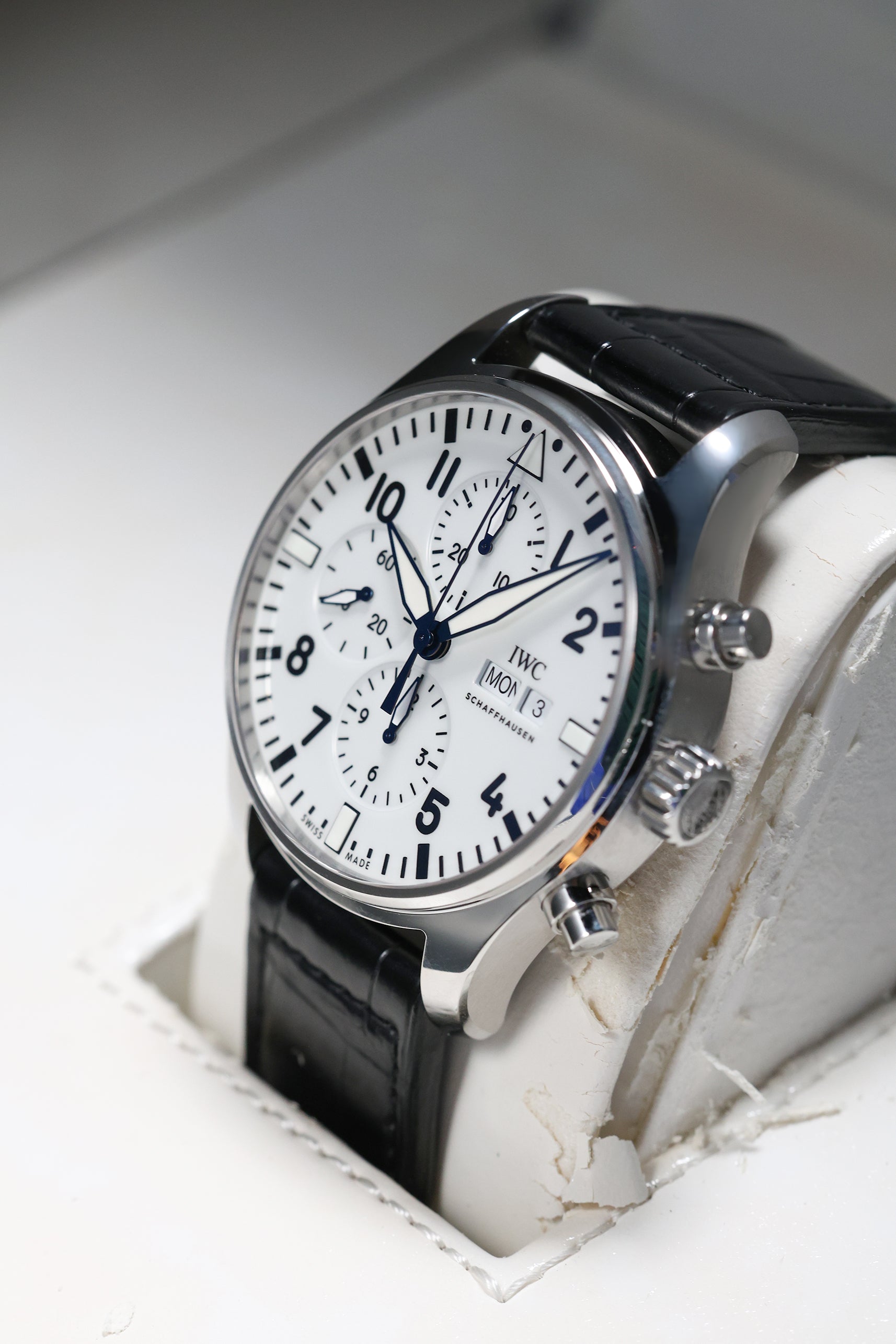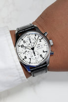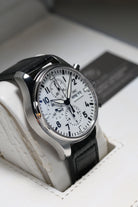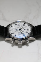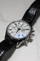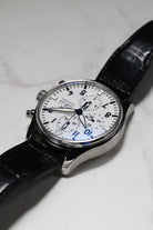 Powering this anniversary model is the IWC Calibre 79320, a robust and reliable automatic chronograph movement based on the venerable Valjoux 7750 architecture. It offers a 44-hour power reserve and the tactile, mechanical "click" of a traditional chronograph. To denote its special status, the solid caseback is engraved with the "150 Years" Jubilee insignia, a symbol of IWC’s century-and-a-half commitment to Swiss engineering. Paired with a black alligator strap, the IW377725 is a rare and sophisticated collector’s piece that successfully merges the rugged soul of a flight instrument with the refined beauty of a commemorative heirloom.