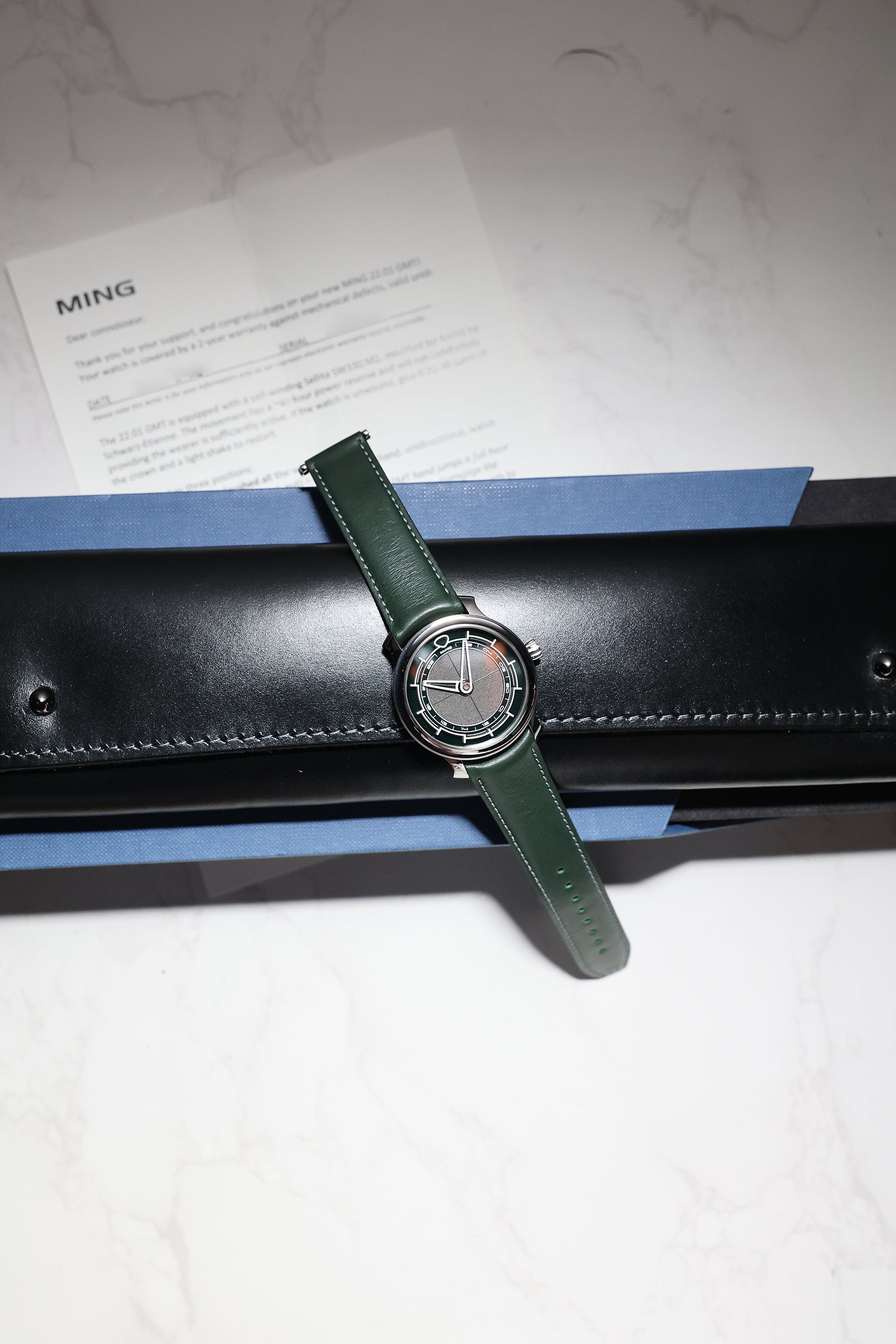 Inside, the Kyoto houses the premium Sellita SW330-2, a movement modified to MING’s exacting standards. It delivers a practical GMT function with a local jumping hour, an ideal complication for travelers. The GMT hand is intentionally discreet, pointing to a 24-hour scale along the inner rehaut. It’s a complication designed not to dominate the watch, but to enhance it—a tool for those who move with intention.