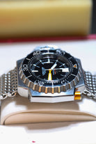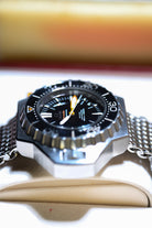 Completing the watch is a stainless steel “shark mesh” bracelet, a direct and charming homage to the original 1970s Ploprof design. This rugged timepiece is not just a conversation piece; it is a technical marvel with historical depth. For serious dive watch enthusiasts, the Ploprof 1200M wears its uncompromising heritage proudly on the wrist, successfully bridging over four decades of unparalleled diving functionality.