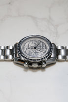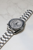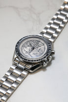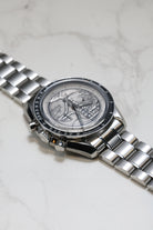 Housed in a 42mm stainless steel case and presented on a matching steel bracelet, the Apollo XVII 40th Anniversary Speedmaster represents a beautiful intersection of artistry, heritage, and technical integrity. As a collector’s piece, its rarity, unique dial, and deep historical significance make it more than just a chronograph—it's a poignant celebration of human achievement and the last time humanity set foot on the Moon.