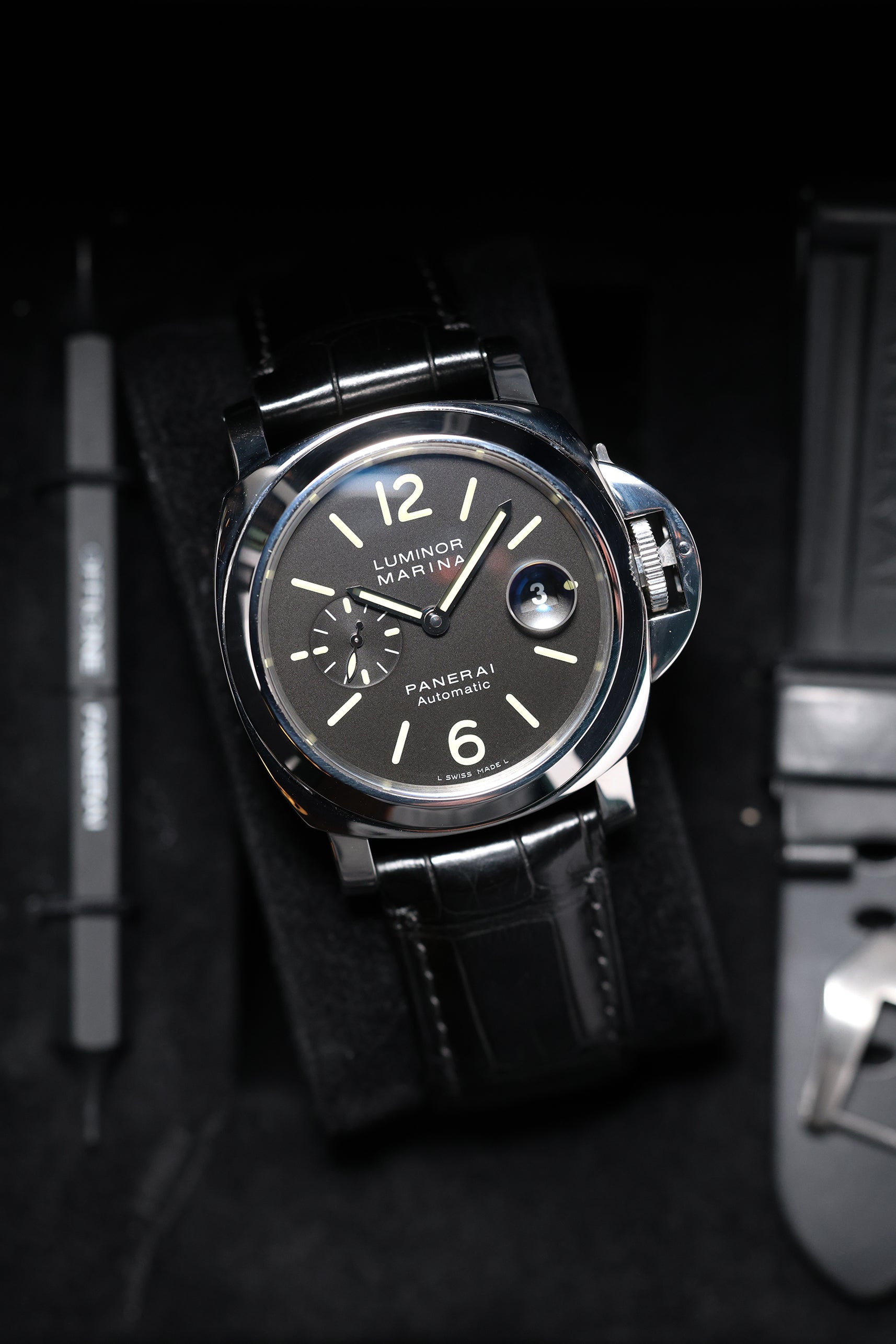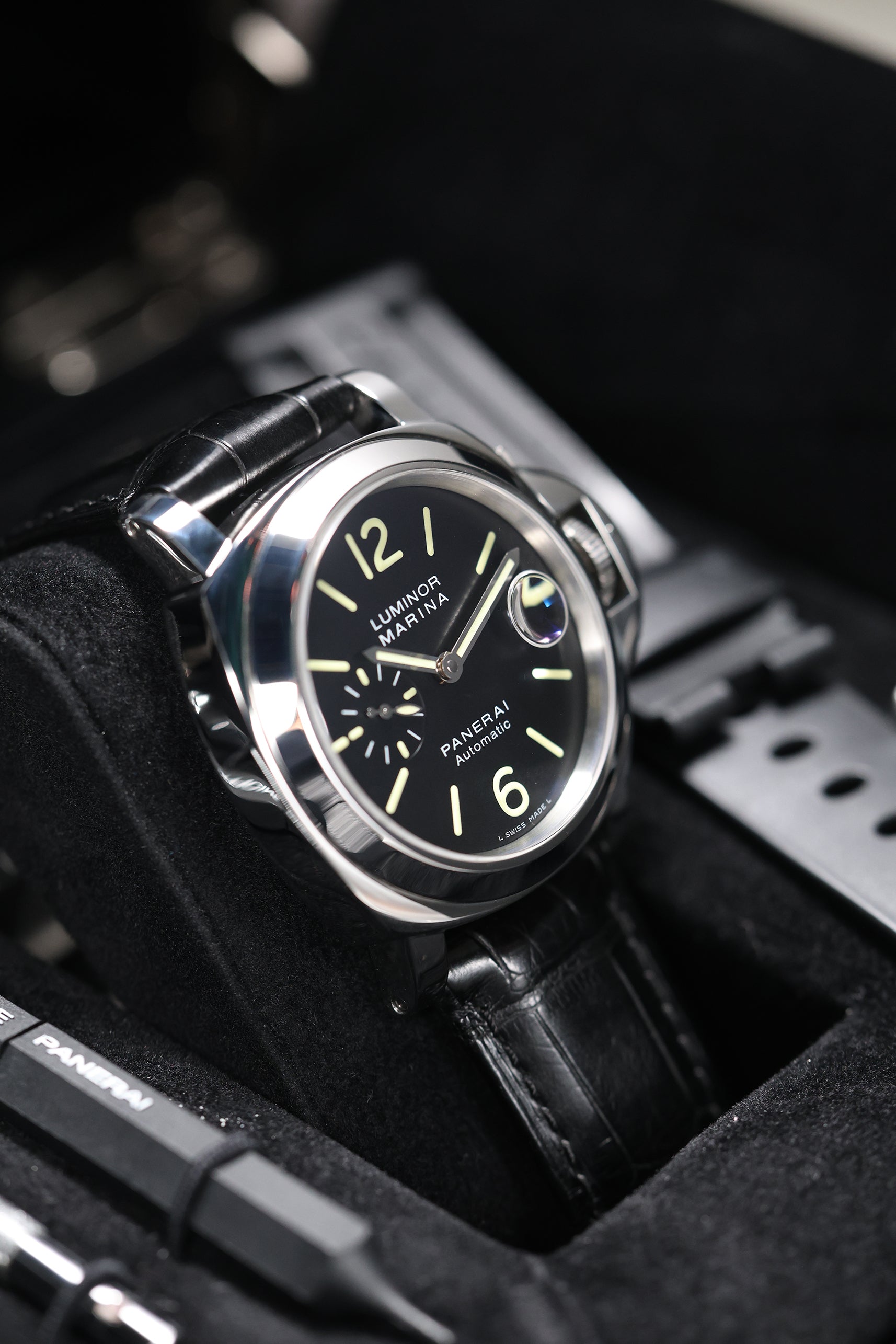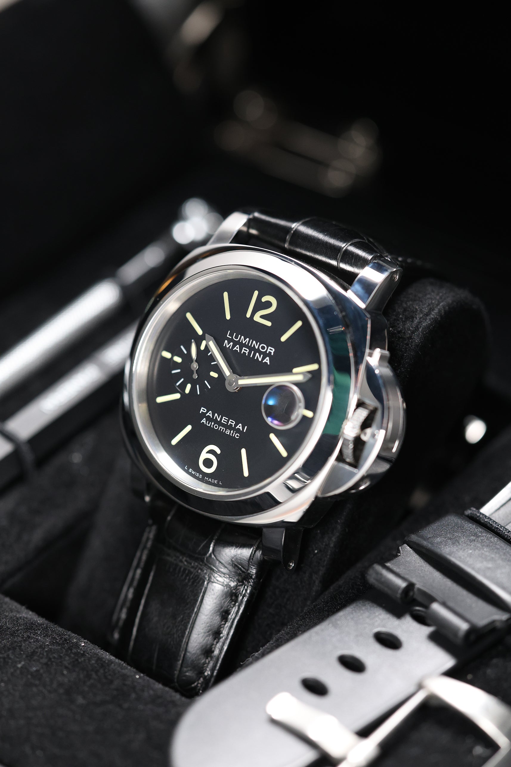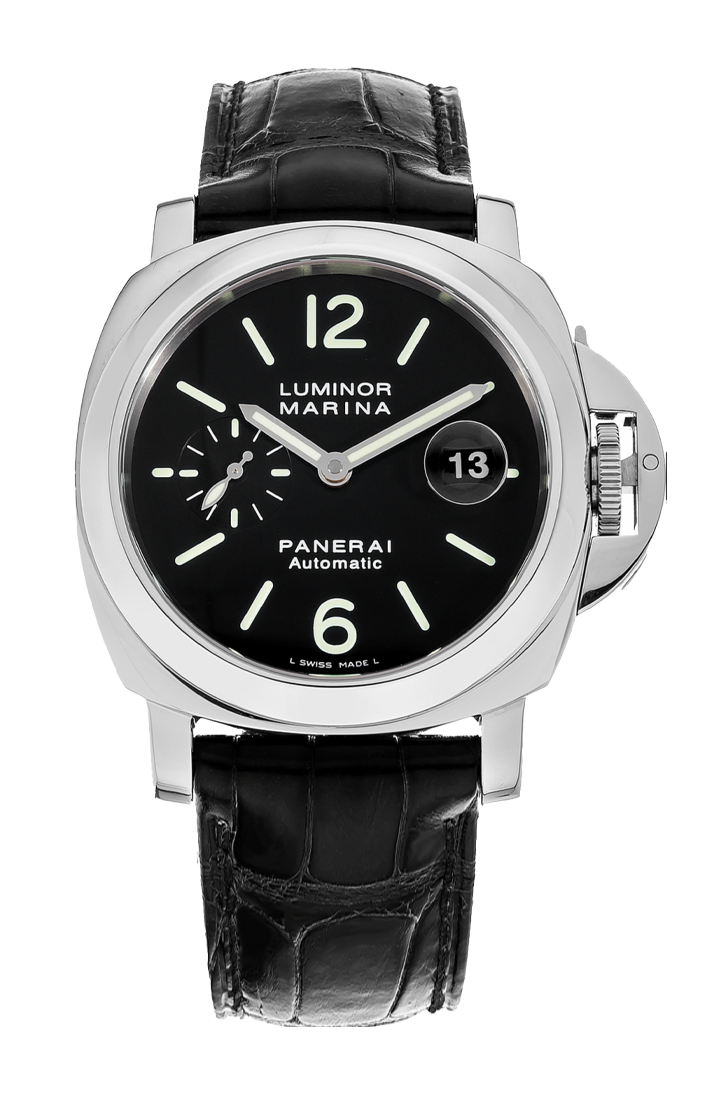 The Panerai Luminor Automatic reference PAM00104 represents the enduring appeal of Panerai’s bold, functional design ethos, combining iconic aesthetics with the convenience of automatic winding. Housed in a robust 44mm stainless steel case, this model is instantly recognizable by its prominent cushion shape and the unmistakable crown-protecting bridge—hallmarks that continue the legacy of Panerai’s mid-century dive watches.