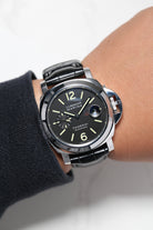 This model is paired with a luxurious black alligator leather strap for formal elegance and includes a rubber strap for greater versatility in sportier settings. Both are secured with a steel deployant clasp. As a complete package, the PAM00104 embodies Panerai’s signature blend of Italian heritage, technical strength, and unmistakable wrist presence, making it a perennial favorite among enthusiasts.