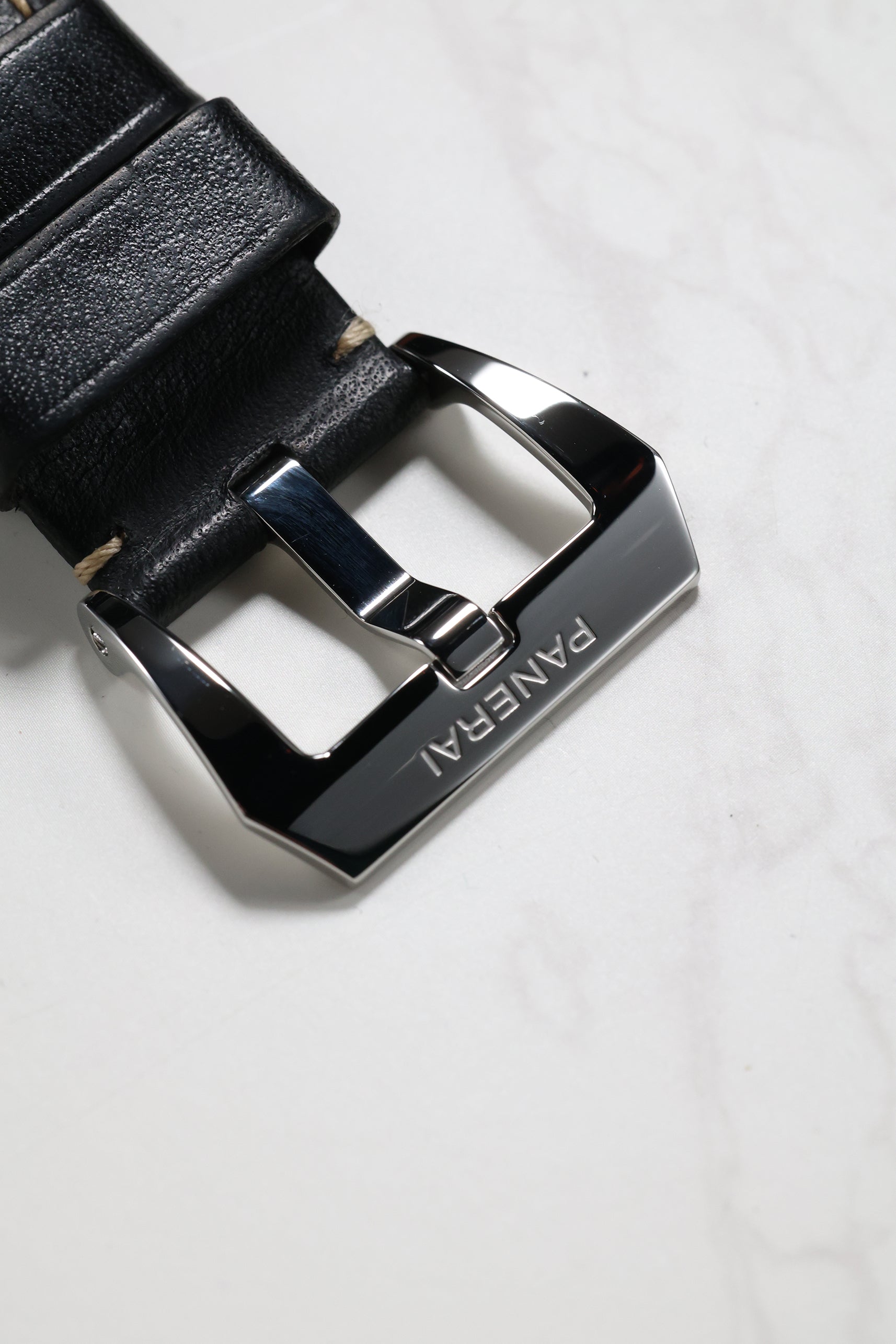 The watch is presented on a rugged black leather strap with contrasting stitching, perfectly echoing its heritage-inspired character. It also includes an additional rubber strap, allowing for a quick transition to more active or aquatic environments. For the collector seeking the purest expression of the Panerai DNA—prioritizing mechanical honesty, legibility, and iconic geometry—the PAM00776 stands as a timeless staple and a confident entry point into the world of the Luminor Marina.
