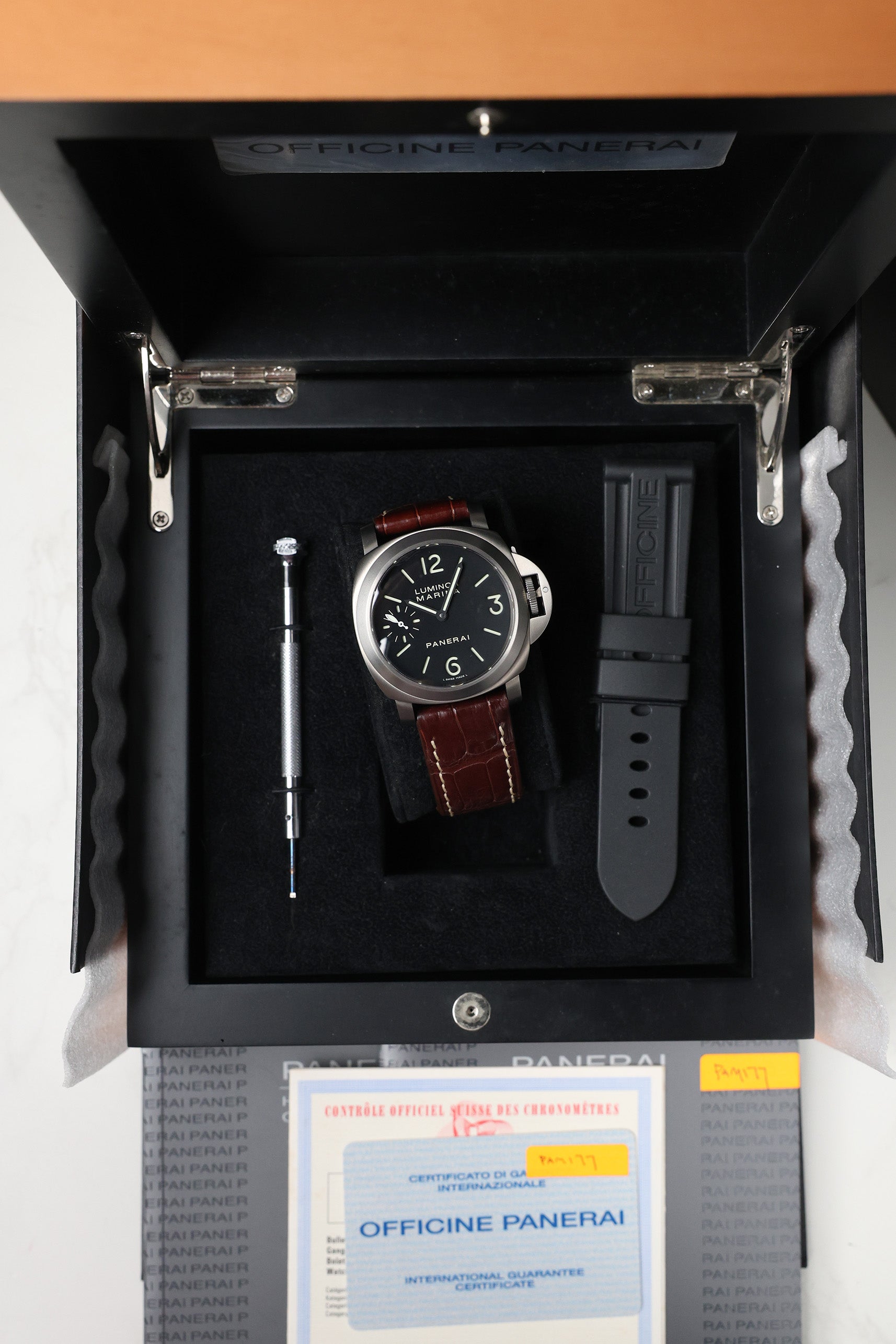 The Panerai Luminor Marina PAM00177 is a quintessential "neo-vintage" icon, representing the peak of the brand’s "OP" era (year 2000s). Combining the rugged, oversized DNA of the Italian Navy with the modern advantage of lightweight materials, the PAM177 is the titanium sibling to the legendary steel PAM111. It occupies a special place in Panerai history as a "pre-in-house" masterpiece—a time when the brand focused on perfecting the classic formula of bold legibility and mechanical honesty before transitioning to its proprietary calibers.