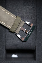 Beneath the solid screw-down caseback lies the in-house Calibre P.900. This self-winding movement is celebrated for its slim profile—essential for maintaining the 42mm case's ergonomics—without sacrificing performance. It offers a substantial three-day (72-hour) power reserve, allowing the wearer to set the watch aside over a weekend and find it ready for action on Monday. Paired with a matching green accordion rubber strap, the Submersible Verde Militare is a rare, armored masterpiece that balances Panerai’s historic ruggedness with a fresh, modern exclusivity.