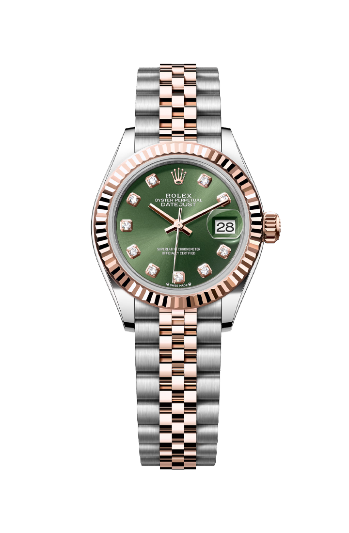 Rolex Datejust 28mm Olive Green 10 Diamond Steel Everose on Jubilee 279171