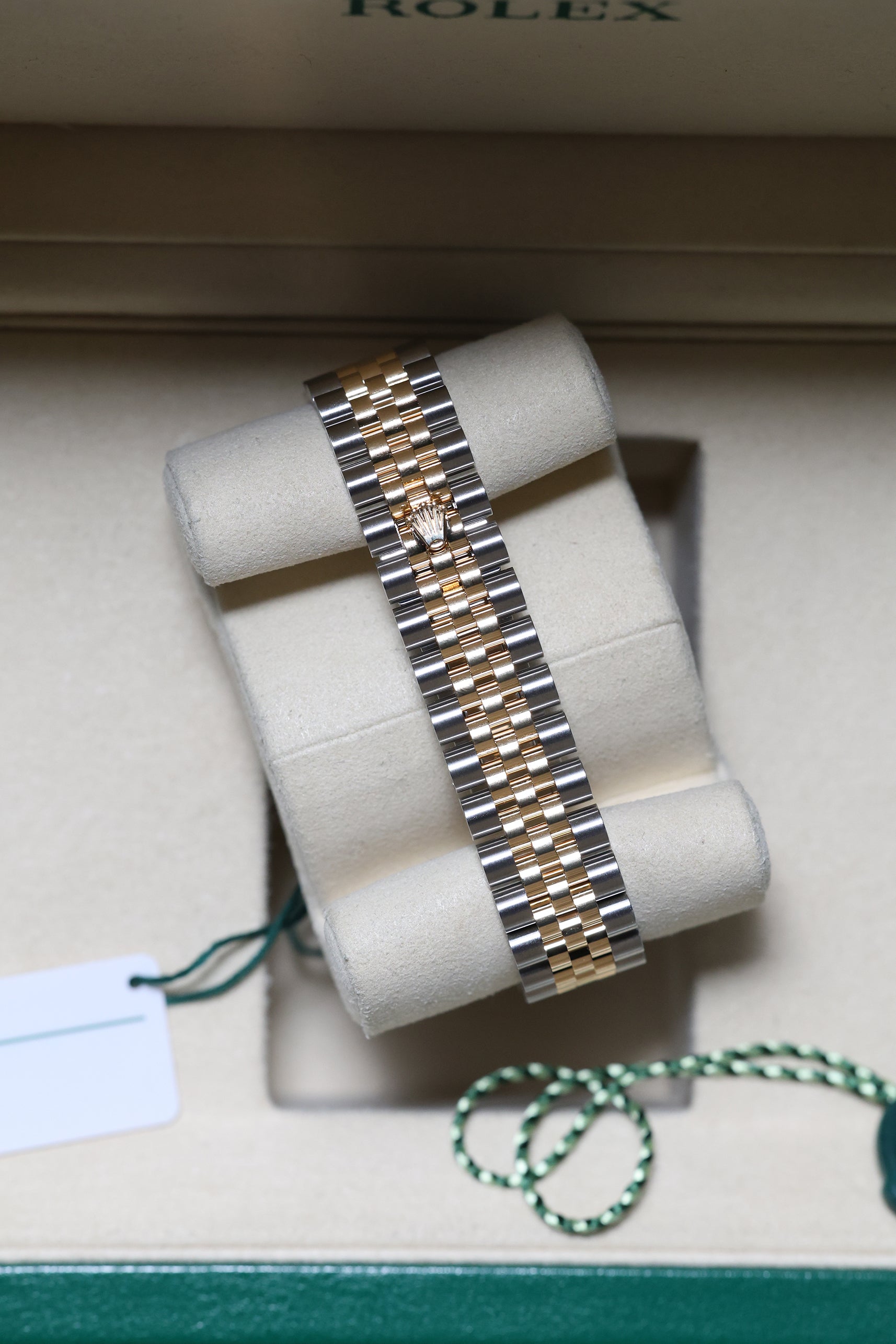 Perfectly sized for a graceful presence on the wrist, the 31mm case pairs seamlessly with the distinguished Yellow Rolesor Jubilee bracelet. Renowned for its intricate five-piece links, the Jubilee offers exceptional comfort and a refined drape, ensuring the watch feels as luxurious as it looks. Its versatile design transitions effortlessly from formal events to elegant daily wear, always exuding an air of classic, sophisticated glamour.