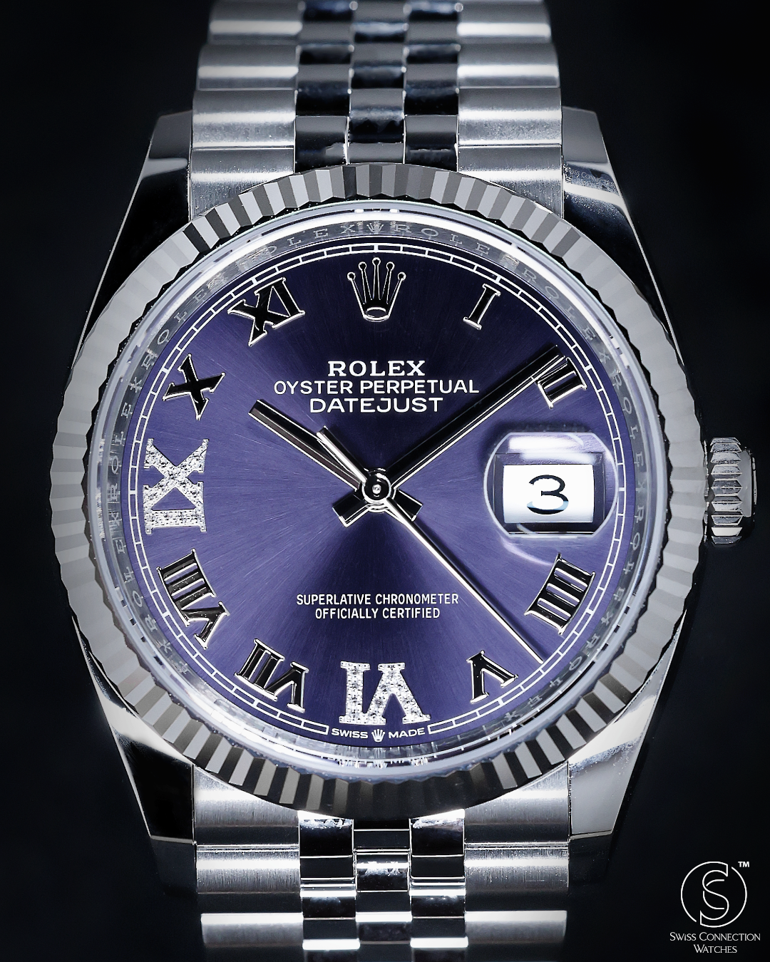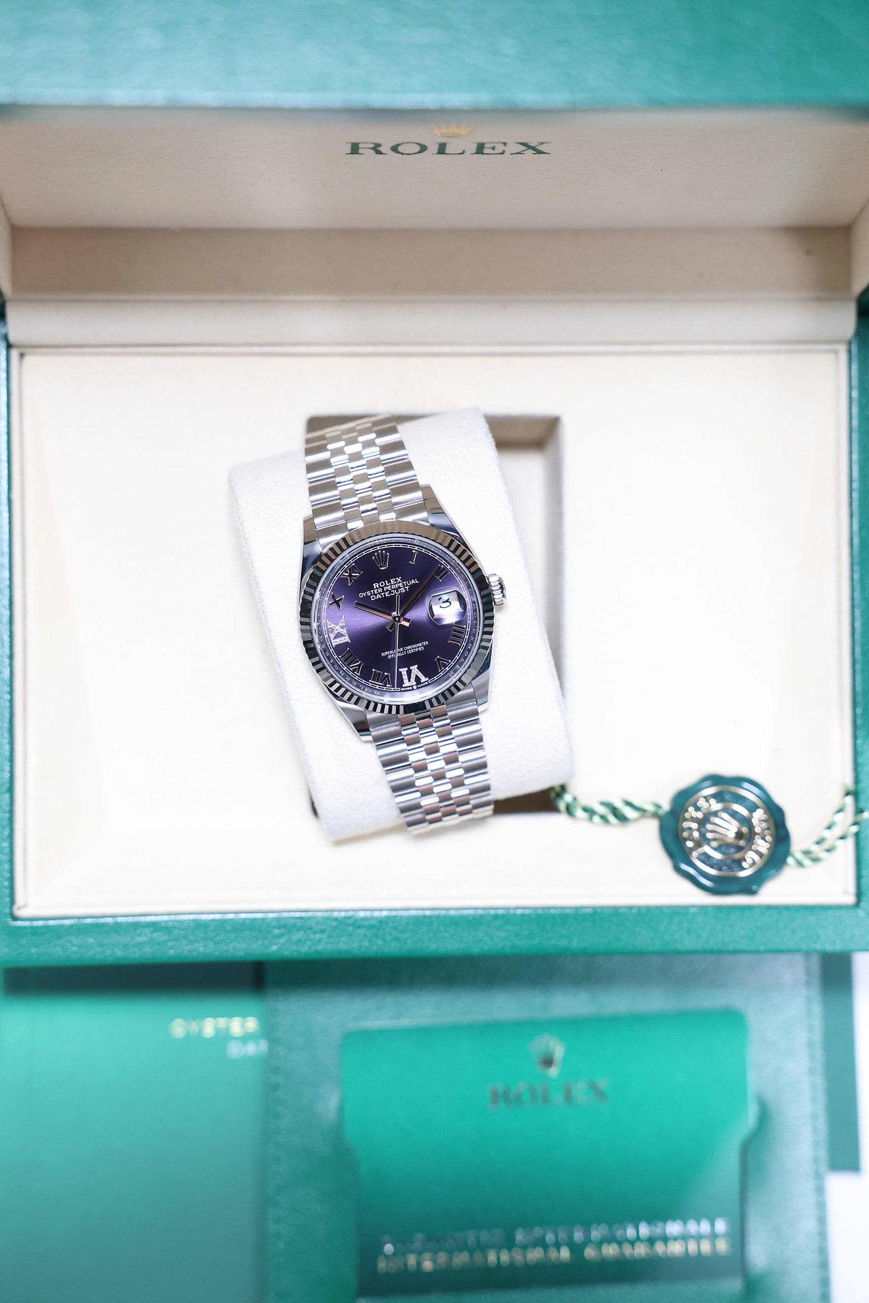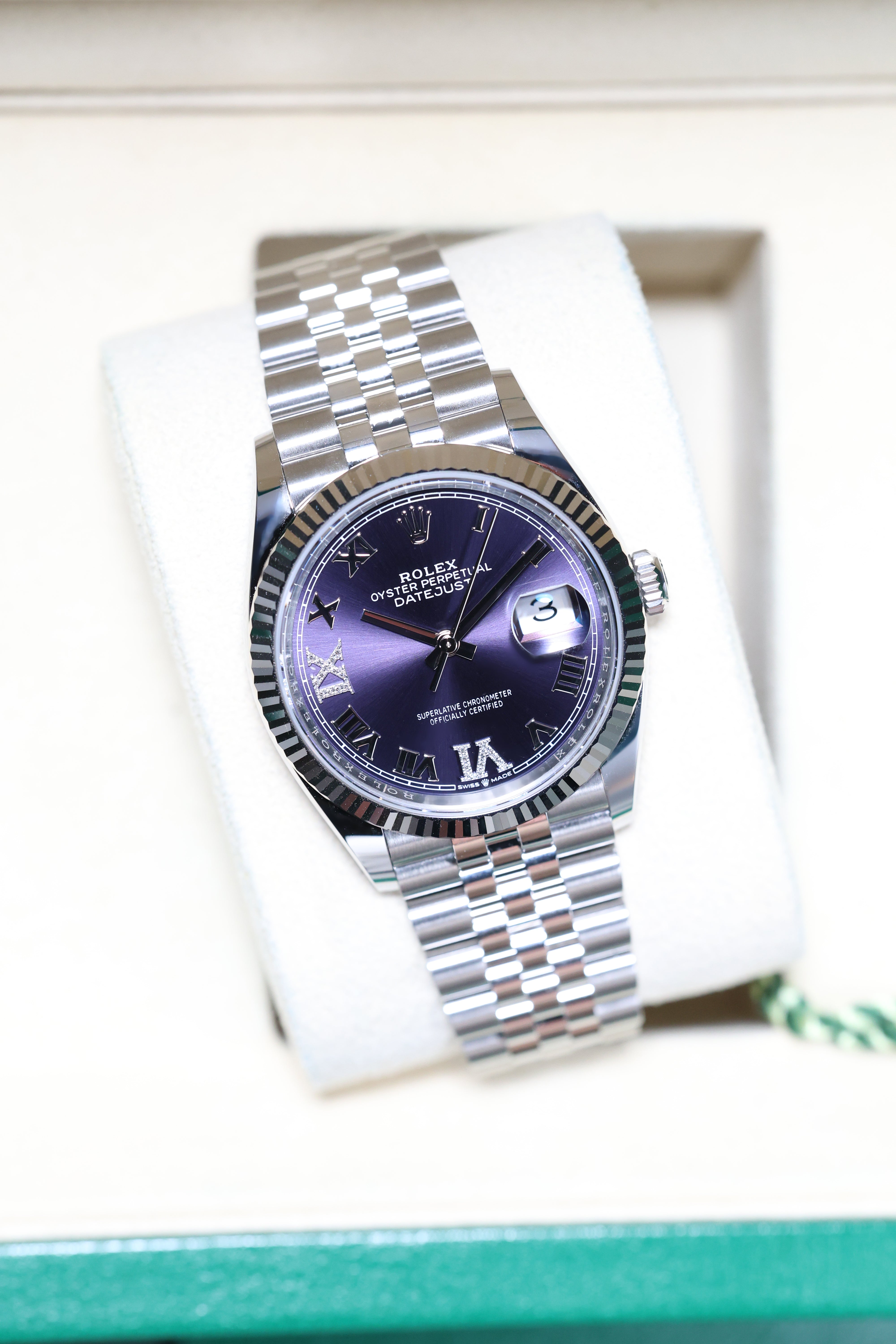 Rolex Datejust 36mm Aubergine VI IX Diamond on Jubilee 126234