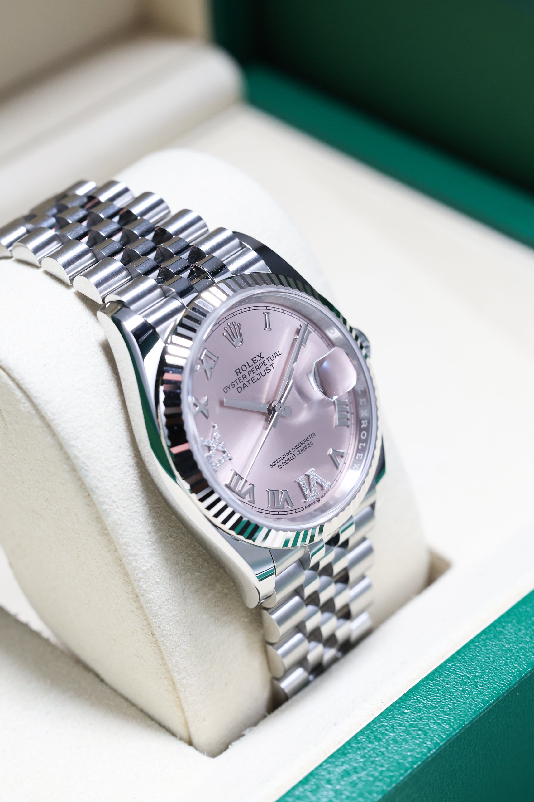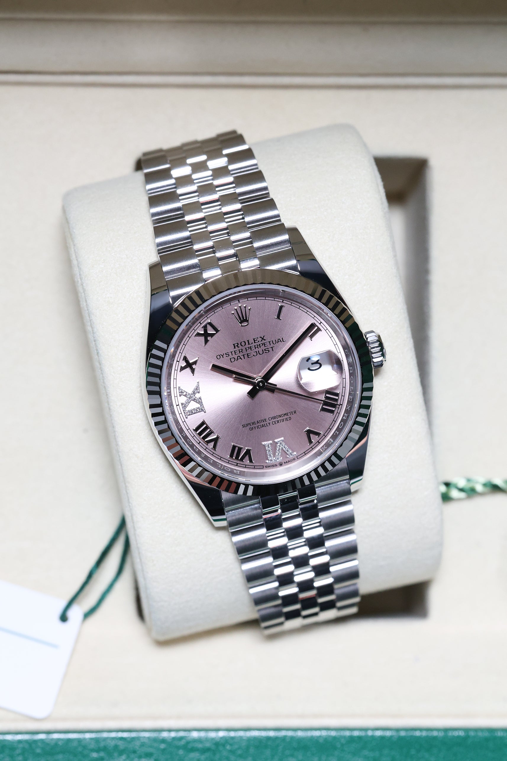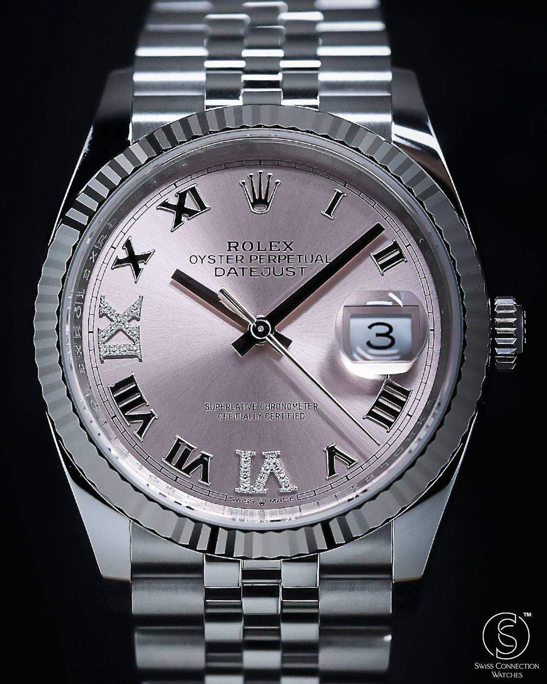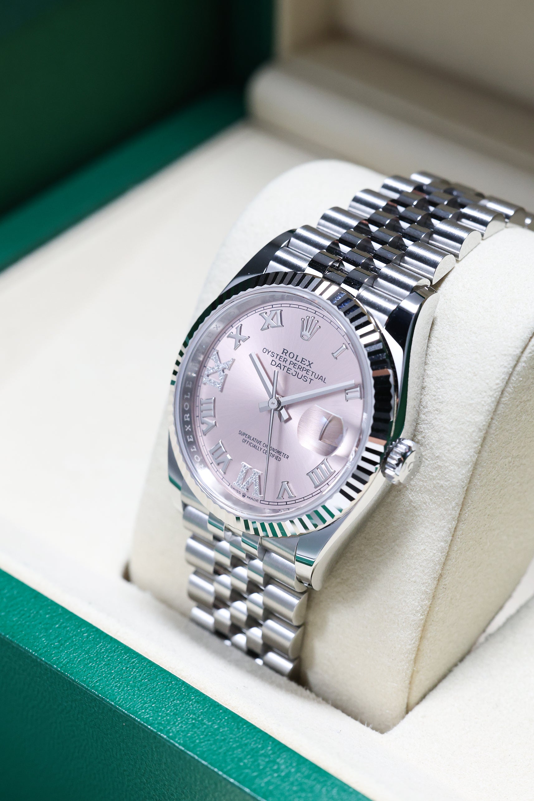 Rolex Datejust 36mm Pink VI IX Diamond on Jubilee 126234