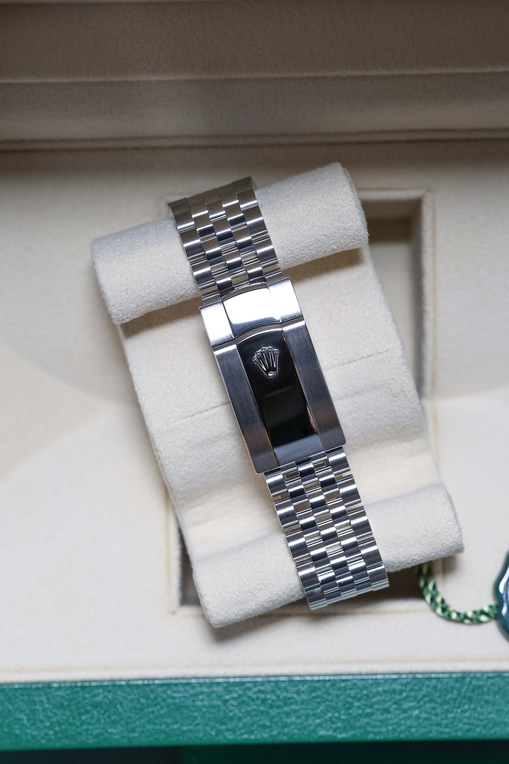 The watch is presented on the legendary Jubilee bracelet, the supple five-piece link design originally created specifically for the Datejust’s debut. Known for its jewelry-like shimmer and exceptional comfort, the Jubilee is equipped with the modern Oysterclasp and the Easylink 5mm comfort extension, allowing for tool-free adjustment to ensure a perfect fit throughout the day. The Oystersteel construction ensures the watch is nearly impervious to corrosion, while the Twinlock screw-down crown guarantees a robust 100-meter water resistance.