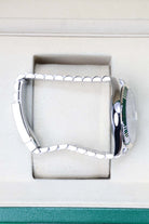 The watch is presented on the legendary Jubilee bracelet, the supple five-piece link design celebrated for its exceptional comfort and jewelry-like shimmer. Pairing the fluted bezel with the Jubilee bracelet is the "canonical" Datejust look—a combination that maximizes the watch's ability to catch and play with light. The bracelet features the Oysterclasp and the Easylink 5mm comfort extension, providing the practical luxury of instant adjustments for a perfect fit throughout the day.