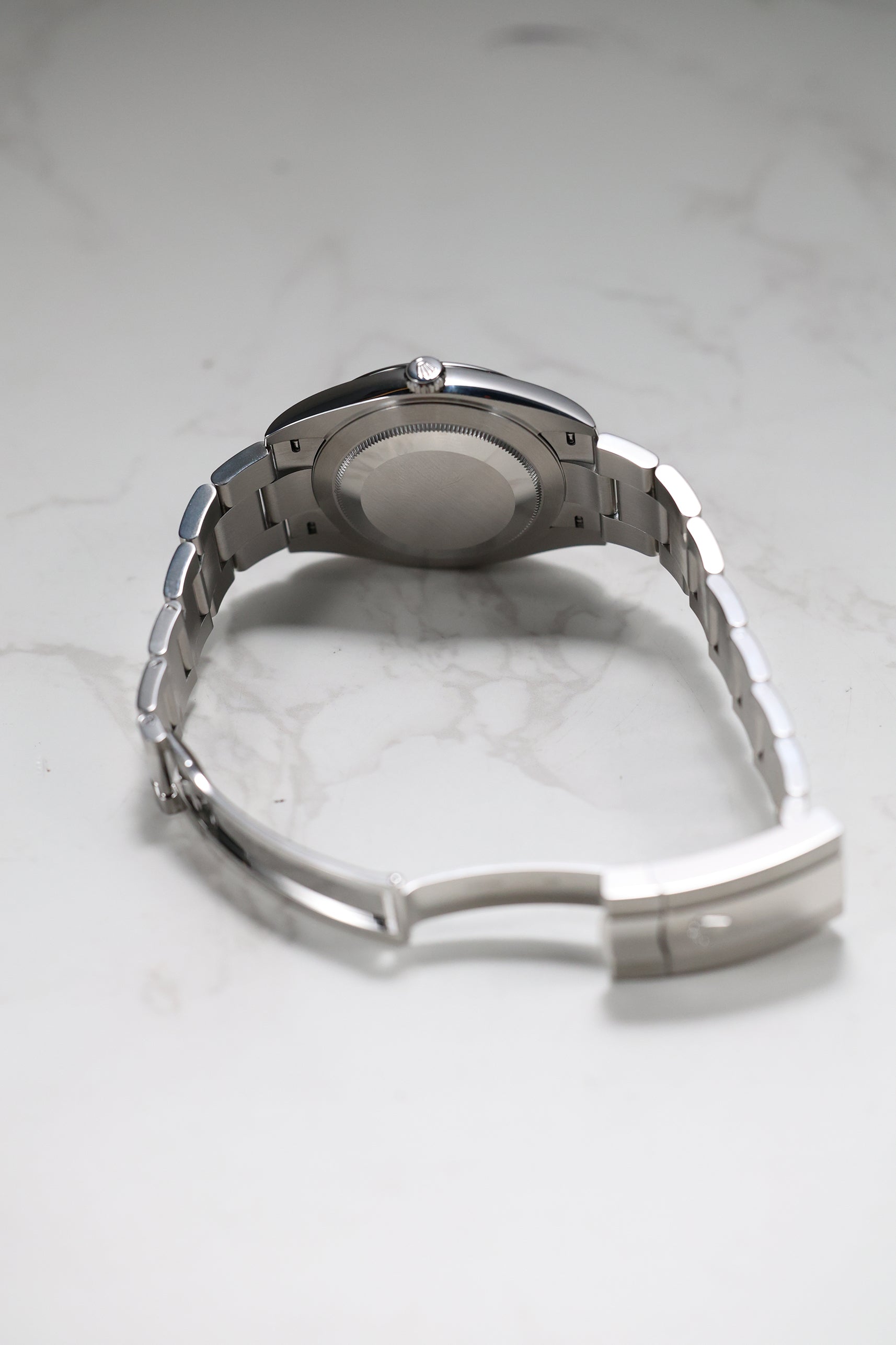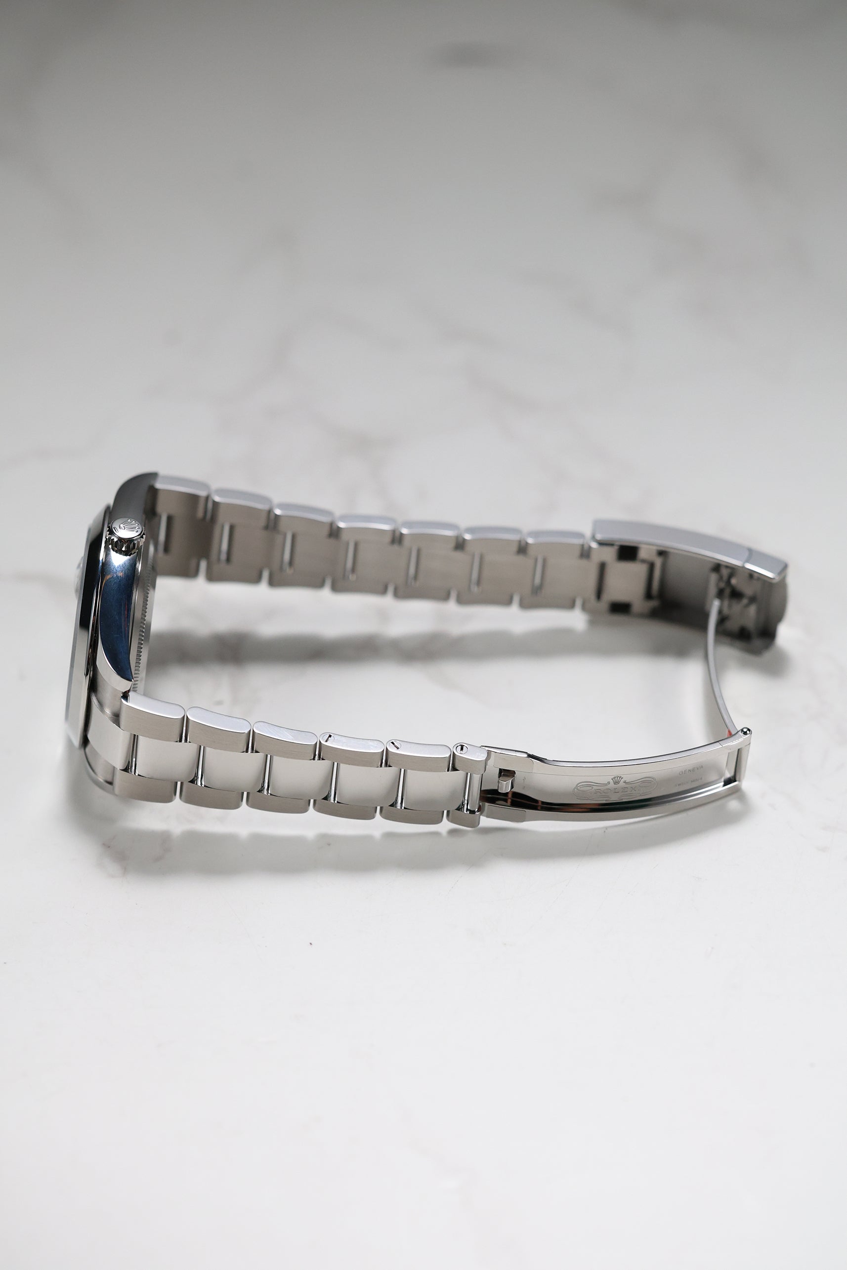 This watch is defined by a seamless blend of polished and brushed surfaces. The 41mm Oystersteel case features a sleek, smooth domed bezel, which gives the watch a clean, contemporary feel. Paired with the robust Oyster bracelet, this combination creates a rugged yet refined look that ensures both exceptional comfort and a strong wrist presence, making it a versatile choice for any occasion.