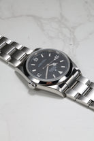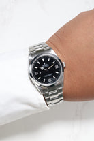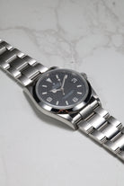 At its core, the 114270 features the iconic 36mm Oystersteel case, a historically accurate size beloved by purists for its balanced proportions and superb fit. The signature black dial is renowned for its clean layout, with the recognizable 3-6-9 Arabic numerals and Mercedes hands filled with Super-LumiNova. Importantly, this reference—particularly models from its final years—features the engraved inner rehaut (Rolex Rolex Rolex around the dial edge), a modern security feature that enhances the watch's identity and visual depth.