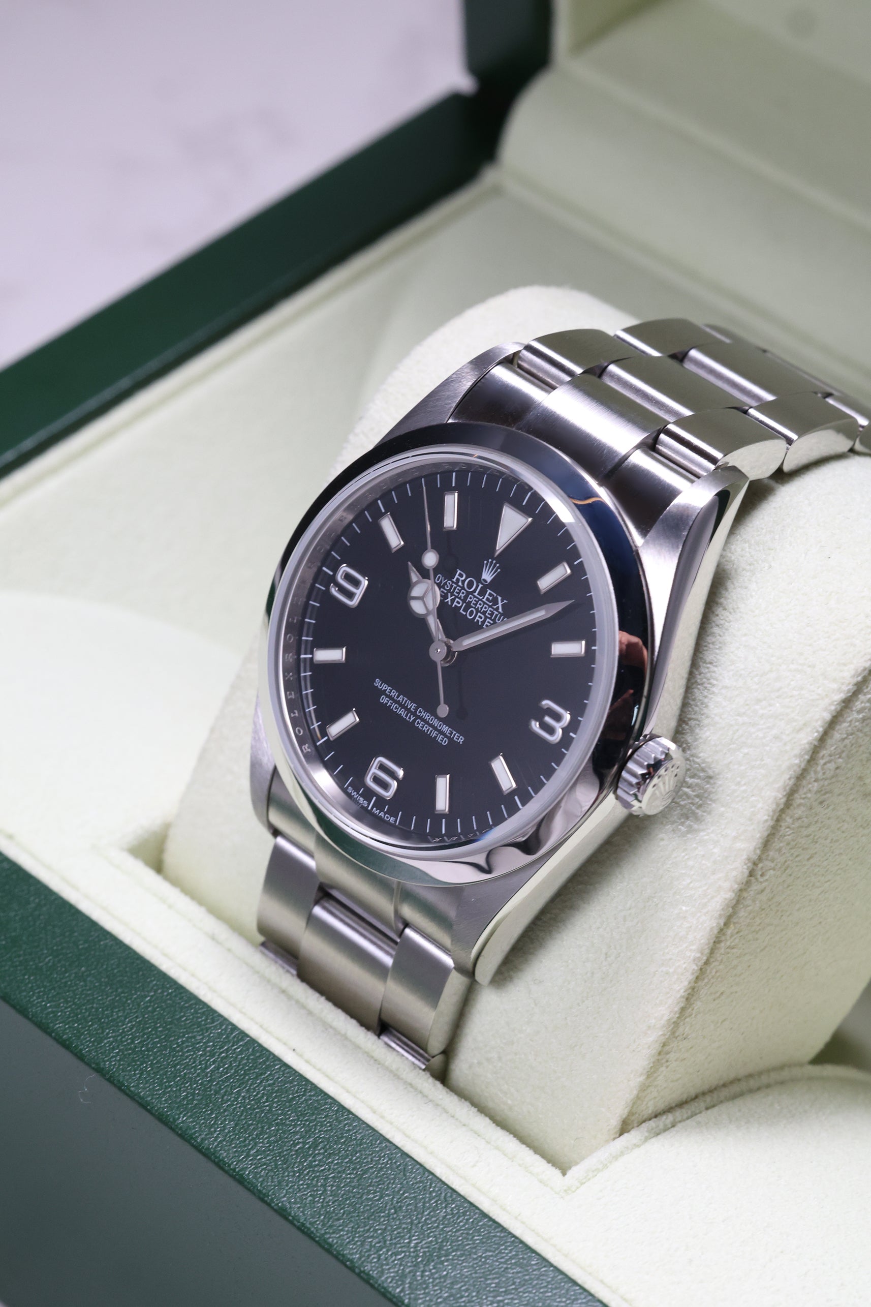 The Rolex Explorer 1 36mm 114270 holds a special place in the hearts of collectors because the 2010 year of production marks its final year before being discontinued. This makes this specific generation highly sought after. It represents a timeless blend of heritage, classic 36mm dimensions, and modern security features like the rehaut, marking it as an authentic and desirable piece of Rolex's adventurous history.