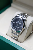 The watch is secured on the sturdy Oyster bracelet, renowned for its durability and comfort. The Oysterlock clasp, paired with the innovative Easylink extension system, allows the wearer to make tool-free micro-adjustments for the perfect fit. The Rolex Explorer 1 reference 124270 remains a timeless, highly functional tool watch with a refined aesthetic, making it an essential piece that successfully bridges six decades of heritage with cutting-edge engineering.