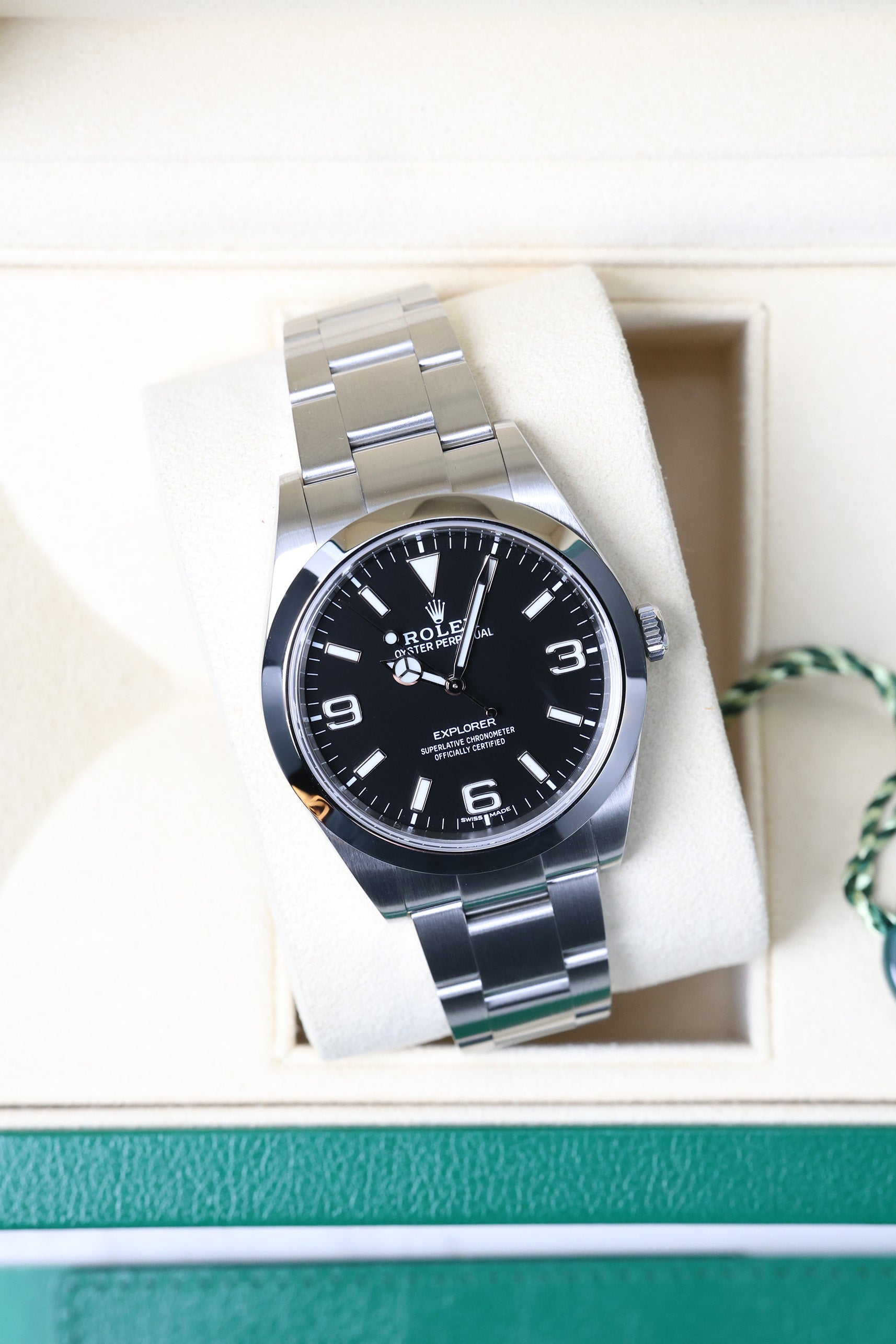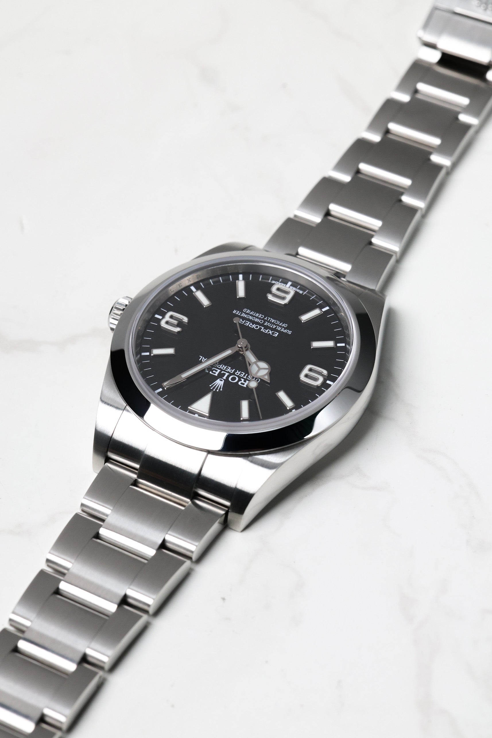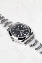 Housed in a robust 39mm Oystersteel (904L stainless steel) Oyster case, the Explorer 214270 strikes a perfect balance between traditional proportions and modern wrist presence. Its solid case construction ensures water resistance up to 100 meters (330 feet), while the scratch-resistant sapphire crystal and Twinlock crown offer unwavering reliability even in demanding environments. The iconic Oyster bracelet, also crafted from 904L steel, features the practical Easylink extension system, providing exceptional comfort and adaptability for daily wear or rigorous outdoor adventures.