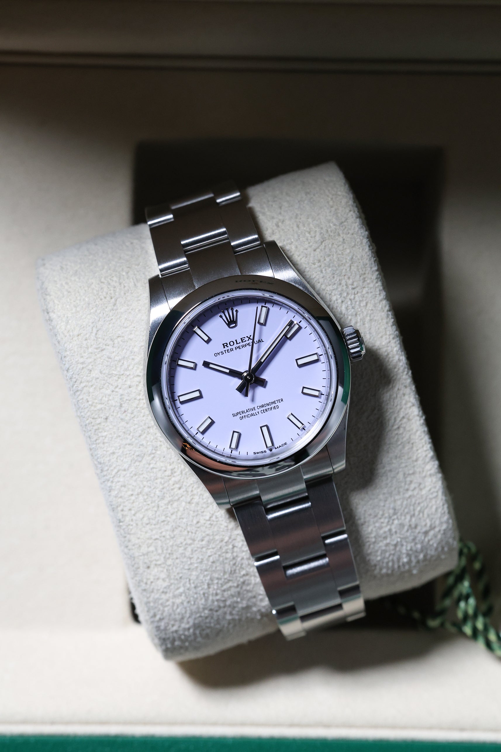 At its core, the 277200 is powered by Rolex's precise in-house automatic movement. This caliber ensures exceptional accuracy, durability, and reliability, all rigorously certified as a Superlative Chronometer. With a robust 100-meter water resistance, this Oyster Perpetual is built not just for elegance, but for robust everyday performance, making it a dependable companion for any occasion.