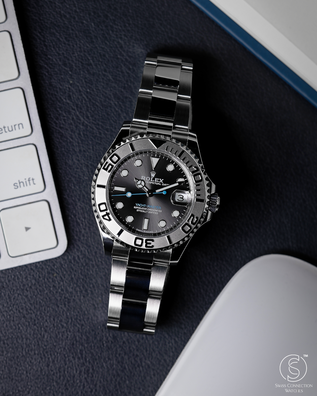 The Rolex Yacht-Master 37mm reference 268622 offers a refined and elegant take on the brand’s professional sports watches. It sets itself apart with a distinctive blend of sportiness and luxury. Unlike the bold and rugged appeal of the Submariner or GMT-Master II, the Yacht-Master feels more polished and versatile, thanks to its sleek proportions and unique use of materials.