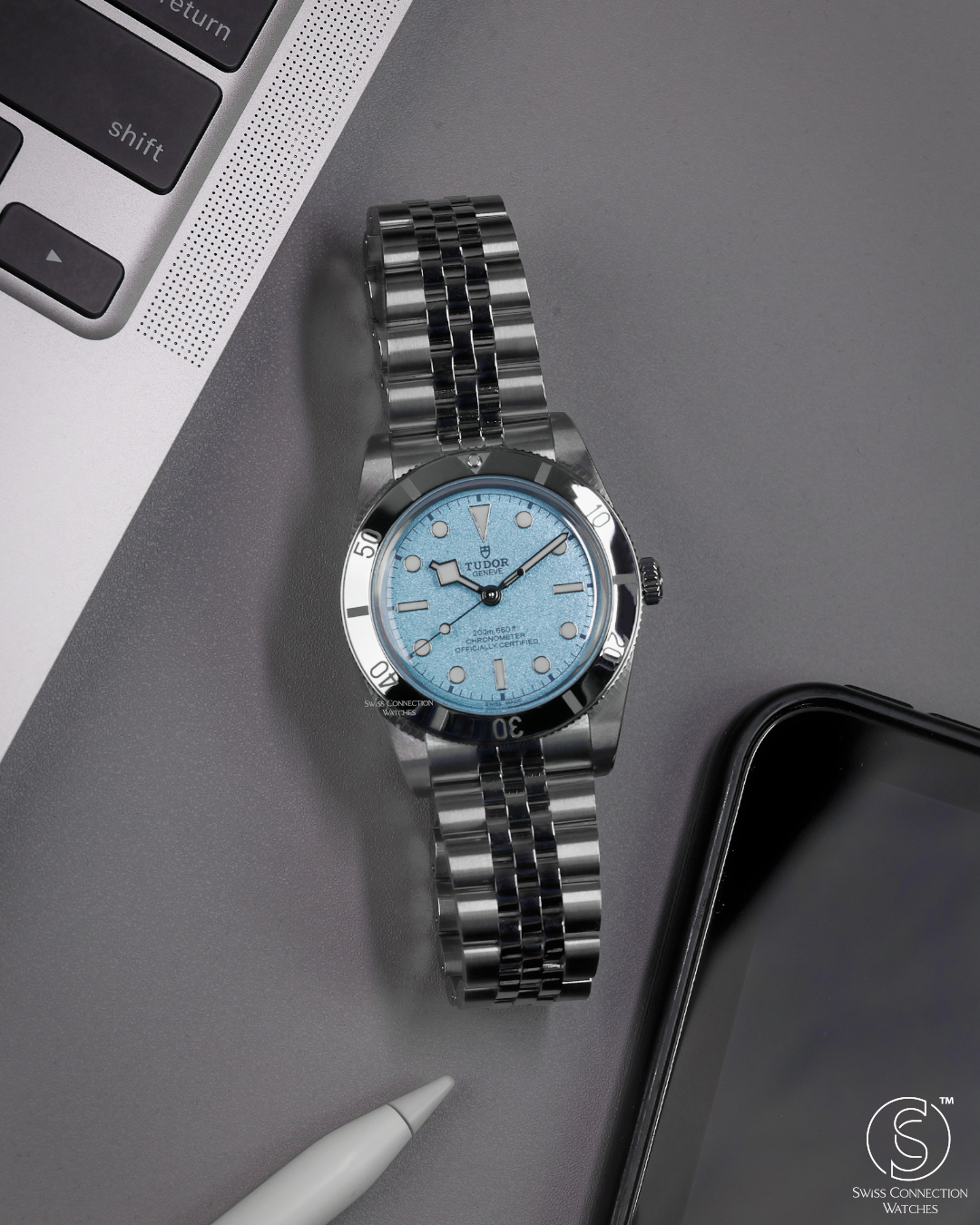 This "Blue Lagoon" model is expertly fitted with a refined five-link stainless steel bracelet which provides an exceptionally fluid and comfortable drape on the wrist. Equipped with Tudor’s highly functional T-Fit clasp system for instant micro-adjustments, the bracelet ensures a perfect fit. By merging retro aesthetics with cutting-edge technology and a refreshing, unique colorway, Tudor has created a highly desirable watch destined to become a staple for enthusiasts who value both heritage and modern style.