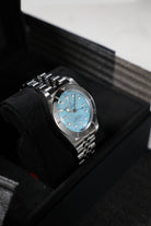 This "Blue Lagoon" model is expertly fitted with a refined five-link stainless steel bracelet which provides an exceptionally fluid and comfortable drape on the wrist. Equipped with Tudor’s highly functional T-Fit clasp system for instant micro-adjustments, the bracelet ensures a perfect fit. By merging retro aesthetics with cutting-edge technology and a refreshing, unique colorway, Tudor has created a highly desirable watch destined to become a staple for enthusiasts who value both heritage and modern style.