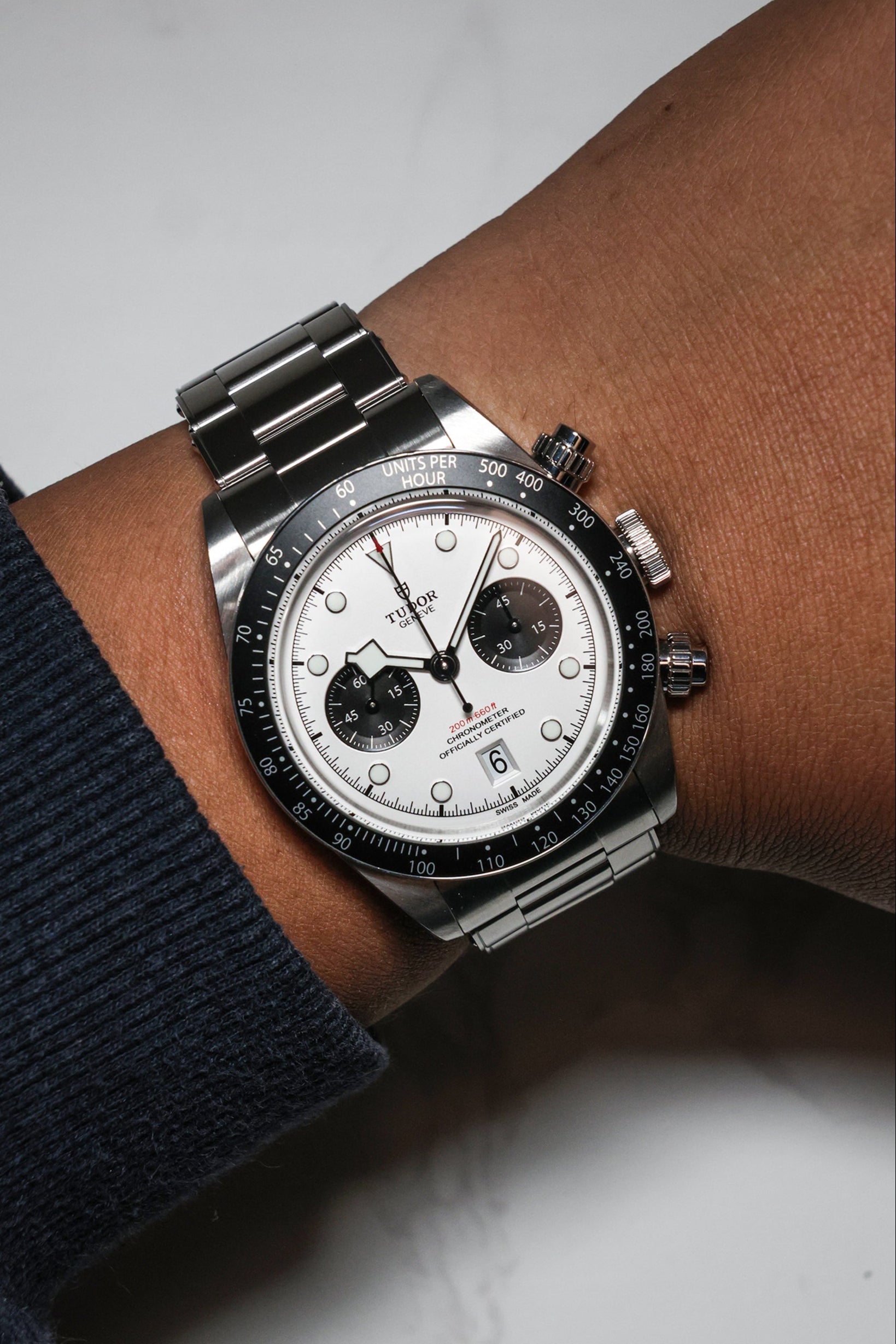 In terms of wearability, the 79360N strikes an excellent balance, bridging the gap between a refined chronograph and a rugged sports watch. It's available on a classic stainless steel bracelet, a sophisticated leather strap, or a casual fabric strap, offering superb versatility in styling. Whether you opt for the integrated feel of the steel bracelet or the relaxed comfort of the fabric strap, the Black Bay Chronograph remains comfortable on the wrist thanks to its well-balanced proportions.