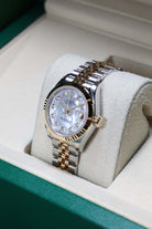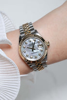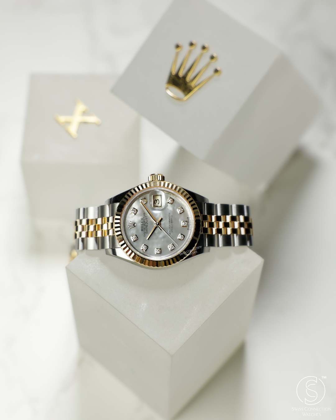 Perfectly sized for a delicate yet distinct presence on the wrist, the 28mm case is paired with the classic Jubilee bracelet. This iconic bracelet, with its intricate five-piece links, offers exceptional comfort and a refined drape, ensuring the watch feels as luxurious as it looks. Its versatile design allows it to transition effortlessly from formal events to elegant everyday wear, always exuding an air of understated glamour.