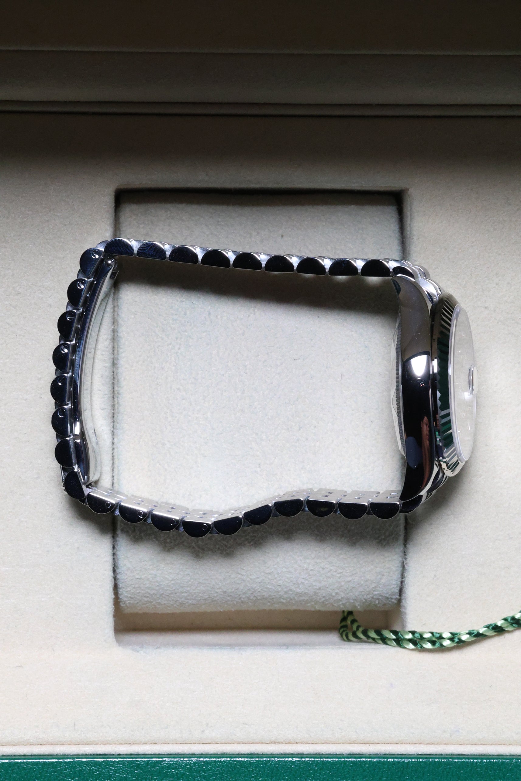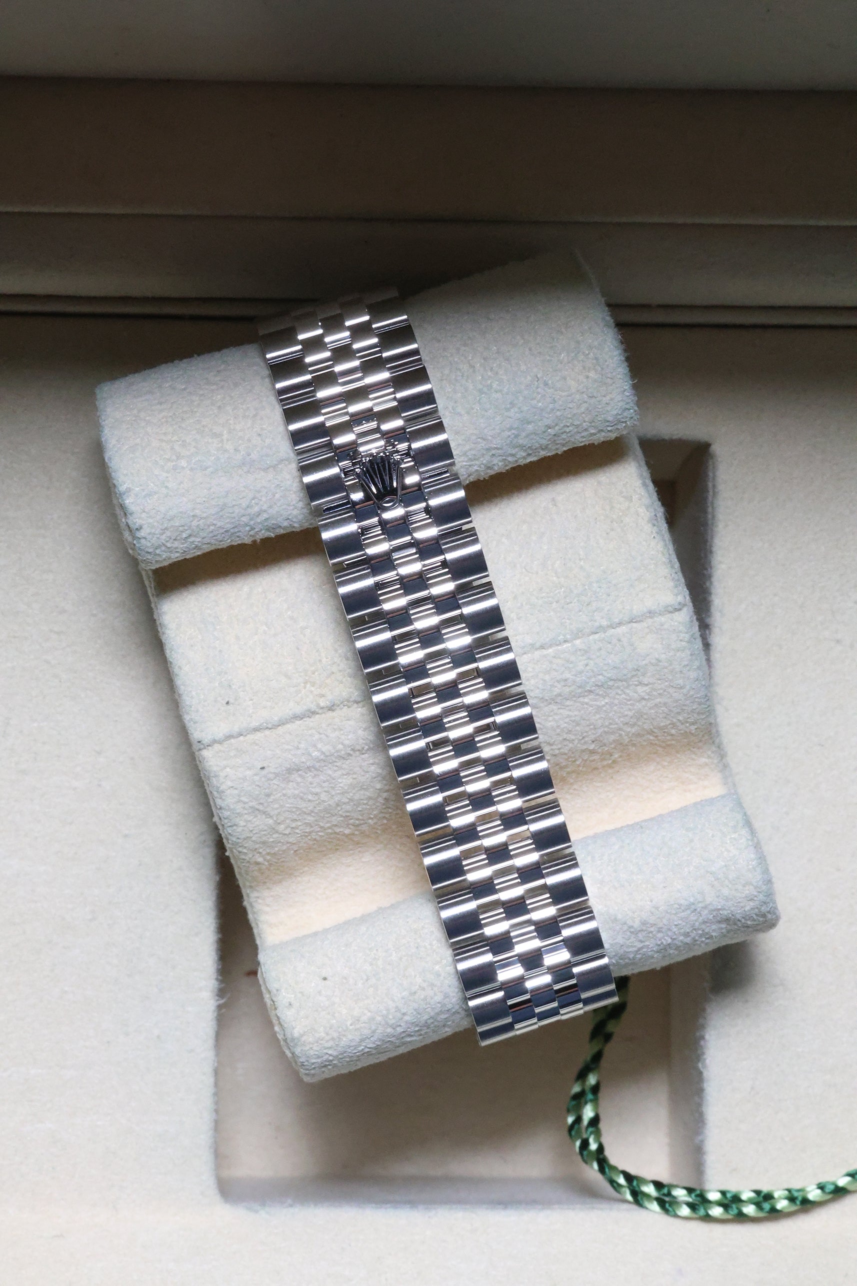 Perfectly sized for a graceful presence on the wrist, the 31mm Oystersteel case pairs seamlessly with the distinguished Jubilee bracelet. Renowned for its intricate five-piece links, the Jubilee offers exceptional comfort and a refined drape, ensuring the watch feels as luxurious as it looks. Its versatile design means it transitions effortlessly from formal events to elegant everyday wear, always exuding an air of sophisticated glamour.