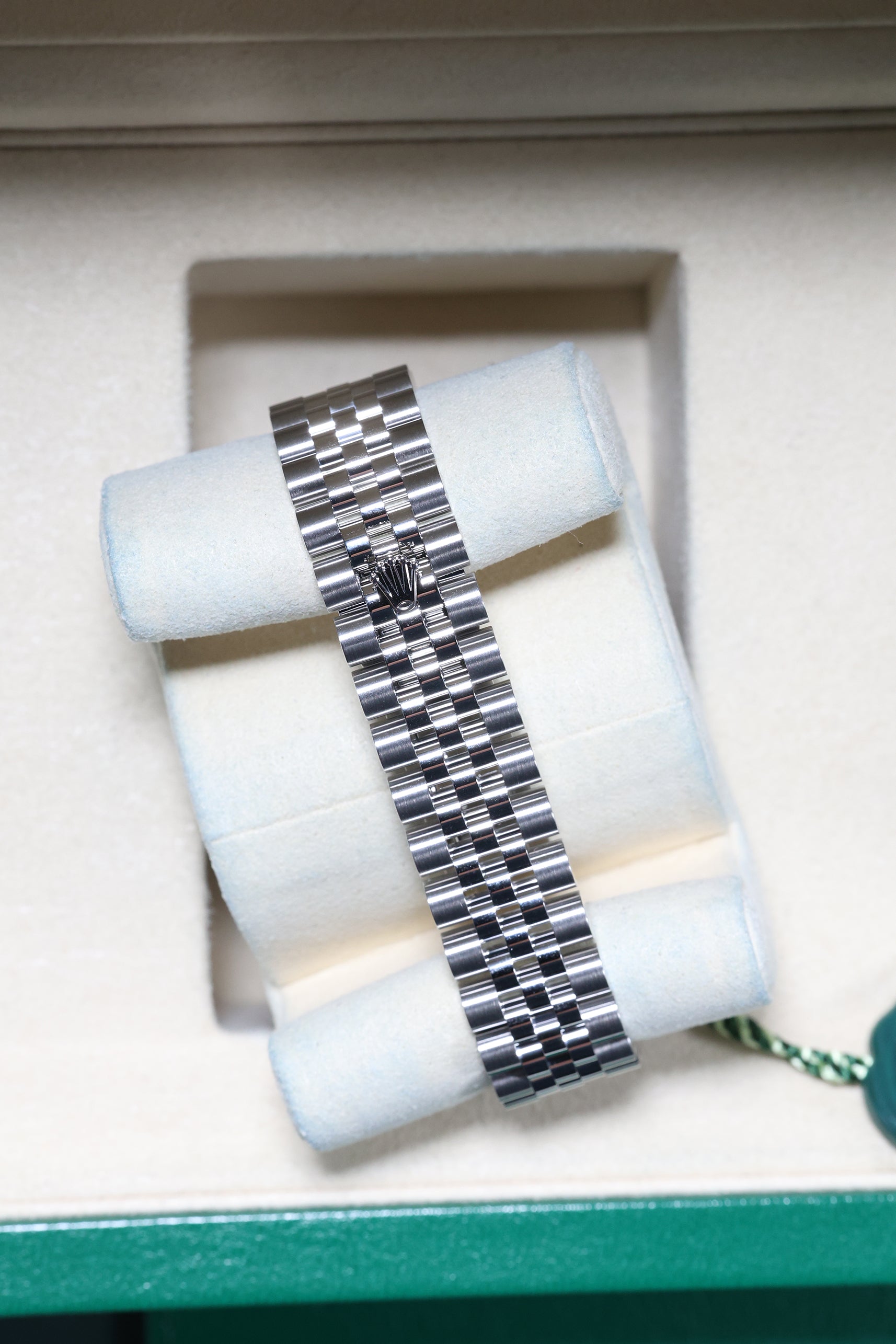 Perfectly sized for a graceful presence on the wrist, the 31mm Oystersteel case pairs seamlessly with the distinguished Jubilee bracelet. Renowned for its intricate five-piece links, the Jubilee offers exceptional comfort and a refined drape, ensuring the watch feels as luxurious as it looks. Its versatile design means it transitions effortlessly from formal events to elegant everyday wear, always exuding an air of sophisticated glamour.
