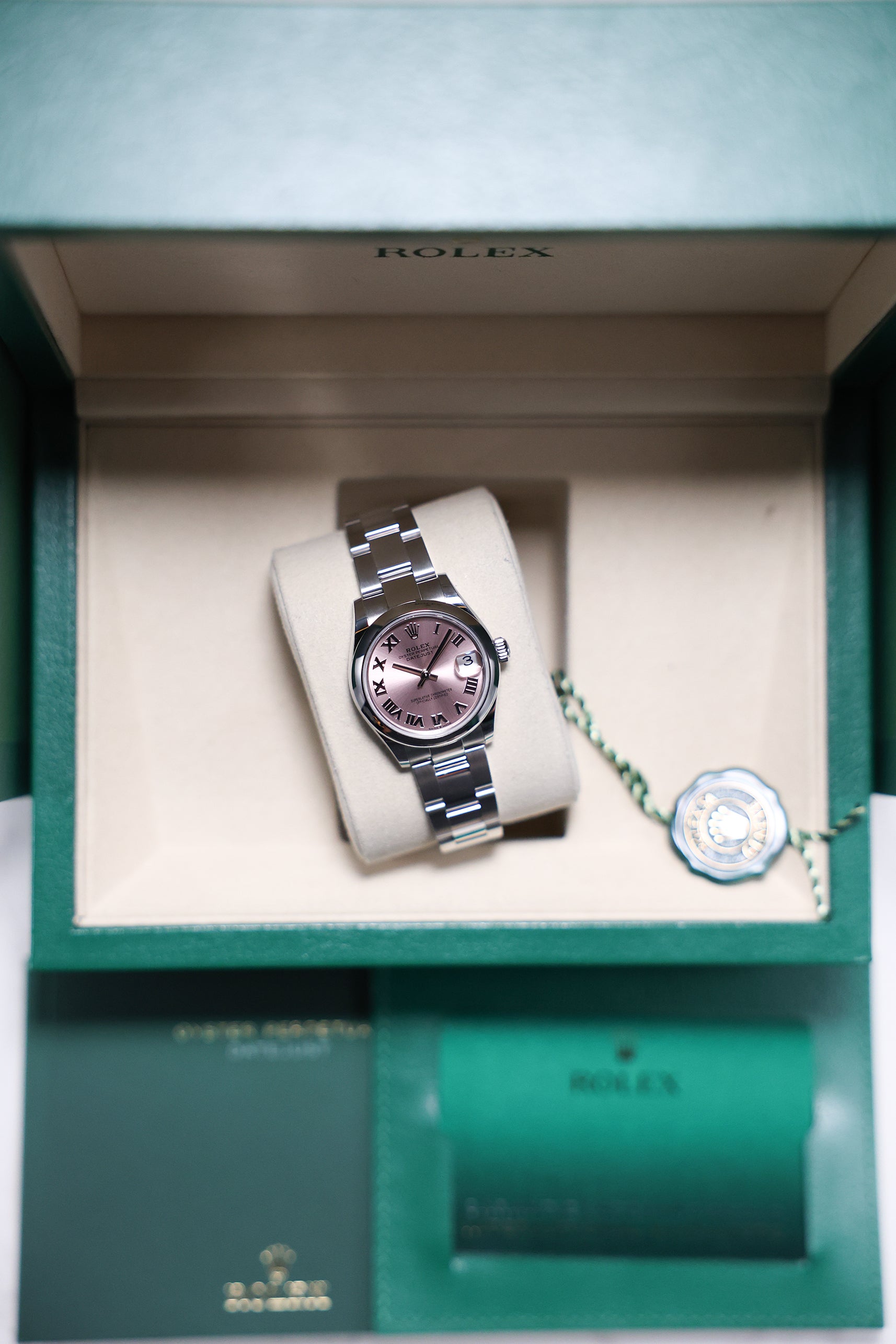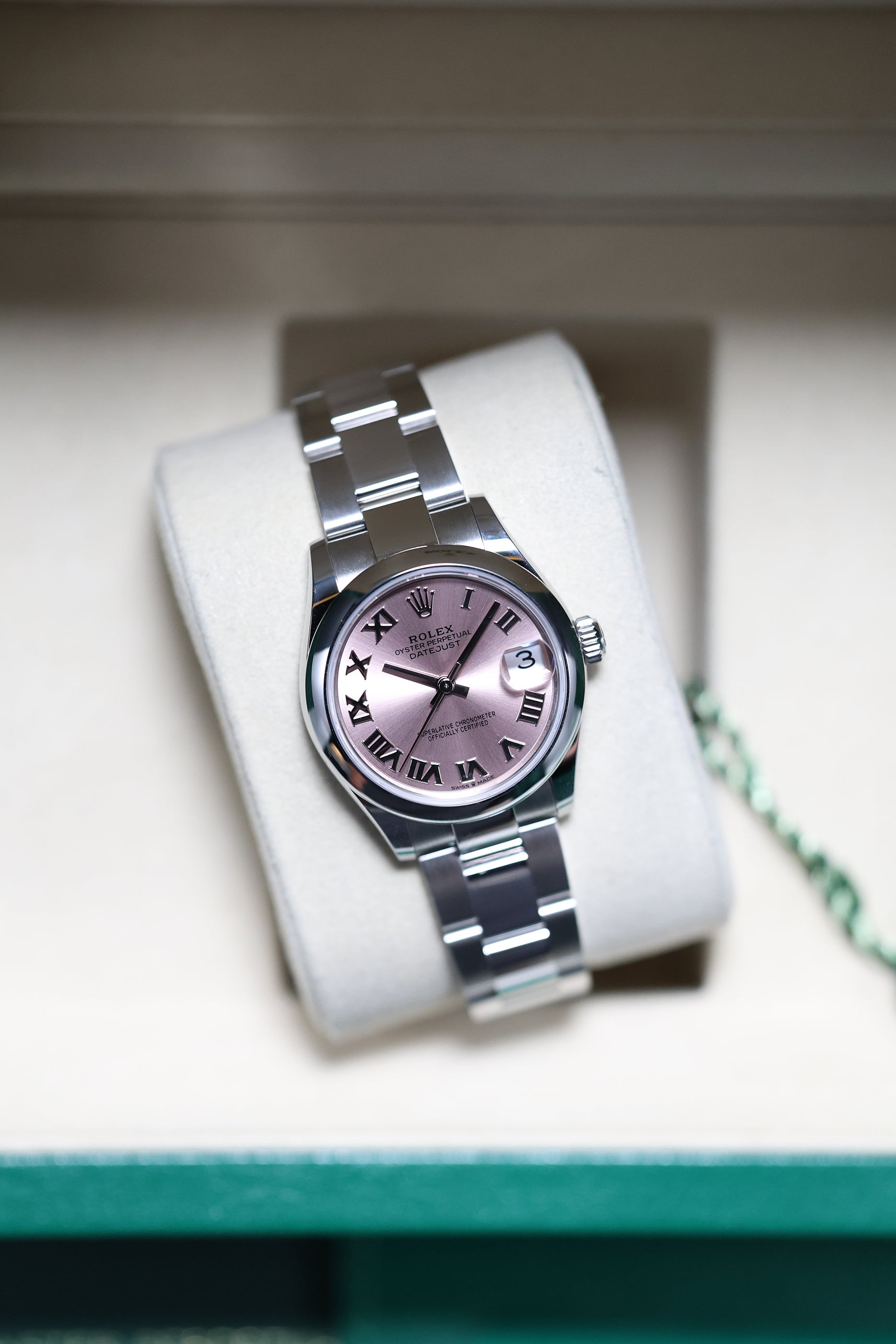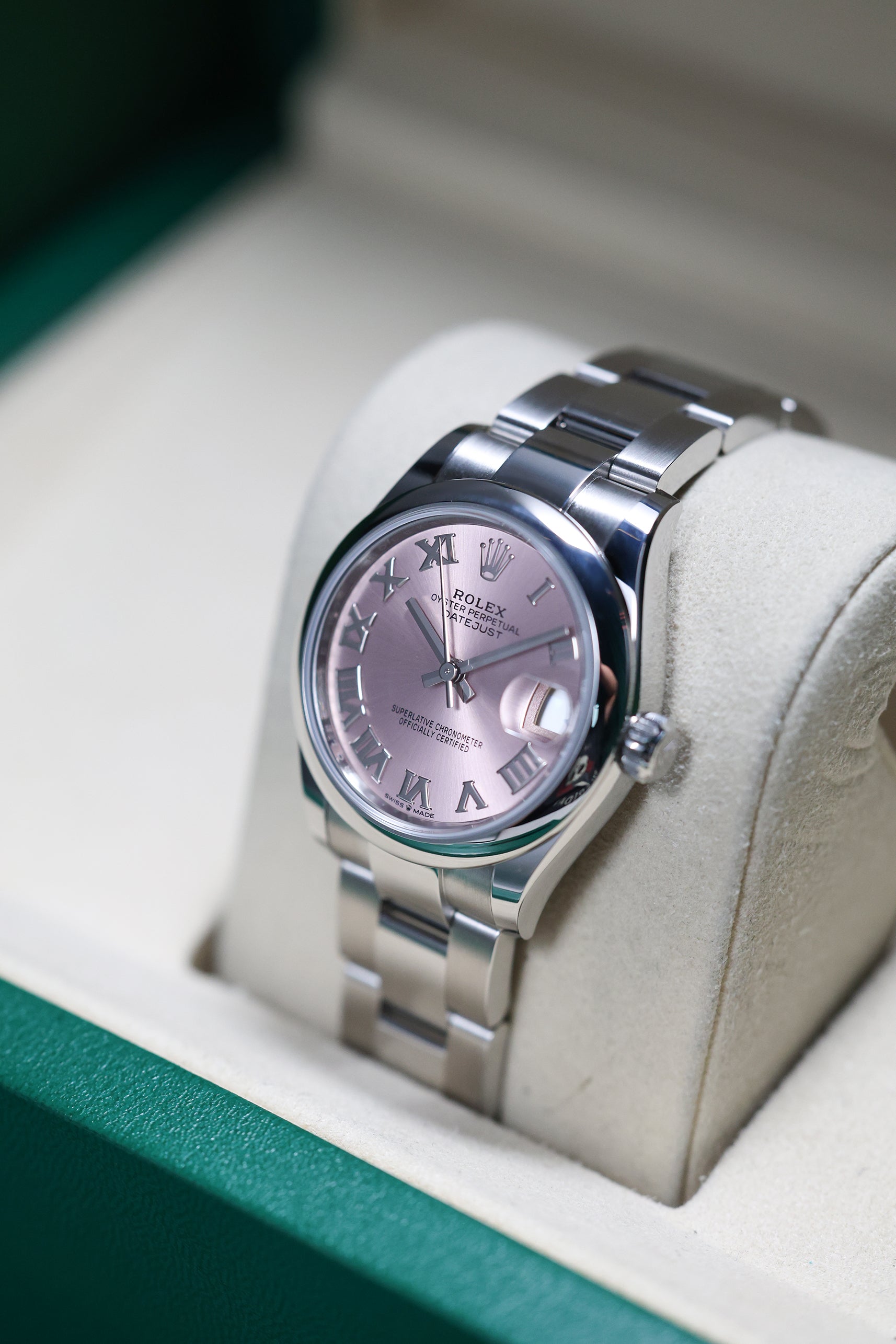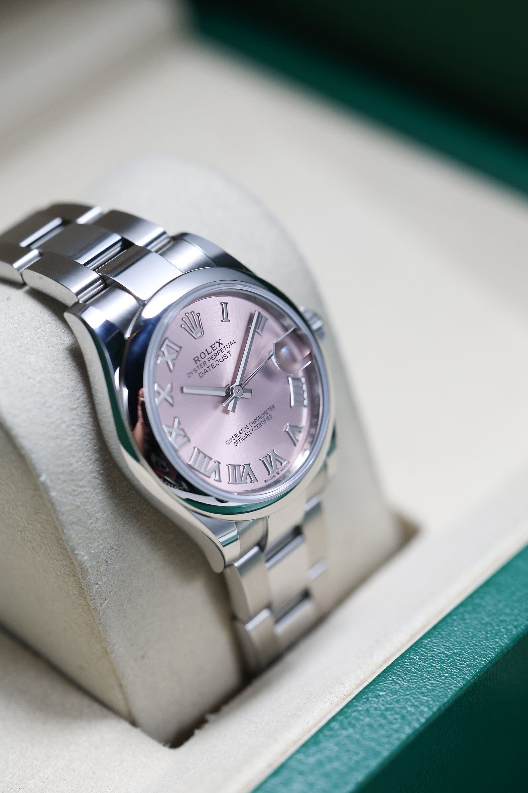 Powering this exquisite timepiece is Rolex's new-generation in-house automatic movement, the Calibre 2236. This mechanism ensures superior precision, durability, and reliability, all rigorously certified as a Superlative Chronometer with an enhanced 55-hour power reserve. With a robust 100-meter water resistance, the Datejust 31 is built as a dependable and practical timepiece, perfectly balancing cherished tradition with modern engineering.