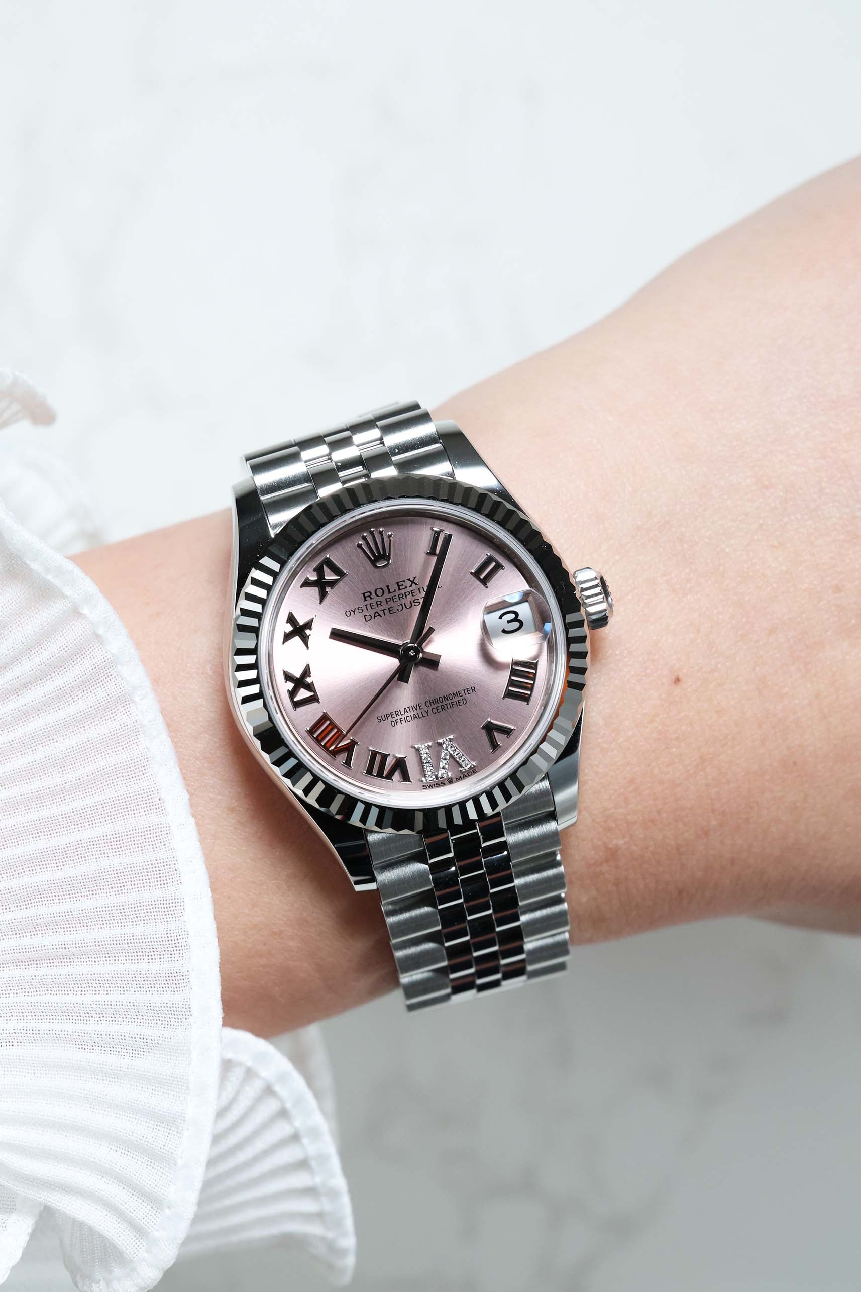 Powering this exquisite timepiece is Rolex's latest in-house automatic movement, boasting an enhanced 55-hour power reserve. This movement ensures superior precision, durability, and reliability, all certified as a Superlative Chronometer. With a robust 100-meter water resistance, the Datejust 31 in Pink Roman with diamond-set VI is more than just a beautiful accessory; it's a dependable and practical timepiece, perfectly balancing cherished tradition with a vibrant, modern spirit and a captivating sparkle.