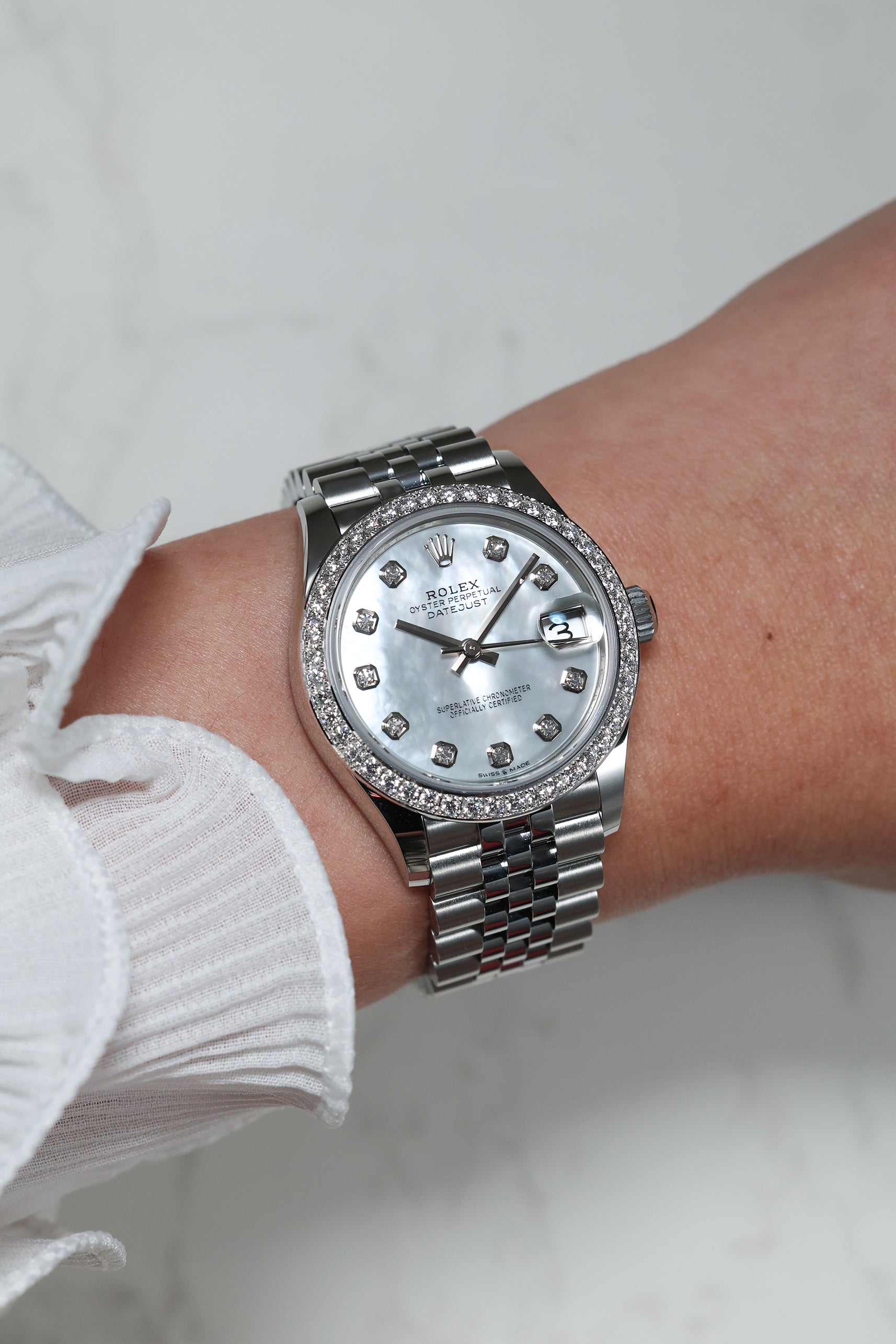 Rolex Datejust 31mm White Mother of Pearl with 10 Diamonds Jubilee 278384RBR