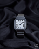 The Cartier Santos de Cartier Large reference WSSA0089 is a bold, contemporary evolution of one of watchmaking’s most important icons. While honoring the original 1904 design created for aviator Alberto Santos-Dumont, this modern interpretation embraces a sleek, stealthy aesthetic defined by its advanced material.