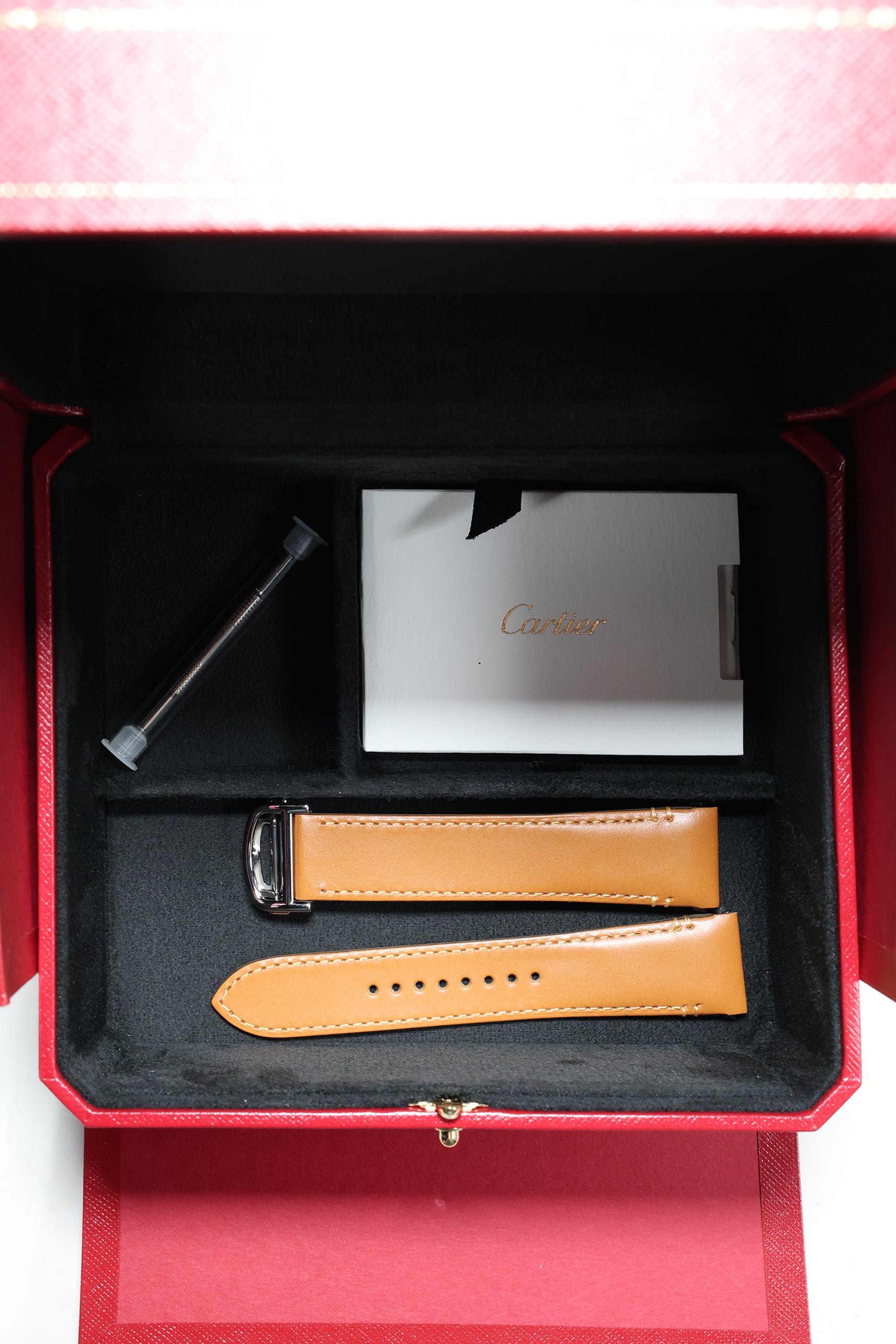 Cartier’s proprietary QuickSwitch system allows for seamless strap changes, and the watch includes both a fully integrated stainless steel bracelet and an additional black leather strap. Paired with the SmartLink system for tool-free sizing, this modular approach ensures the Santos transitions effortlessly between boardroom, black tie, and weekend casual — always with quiet distinction.