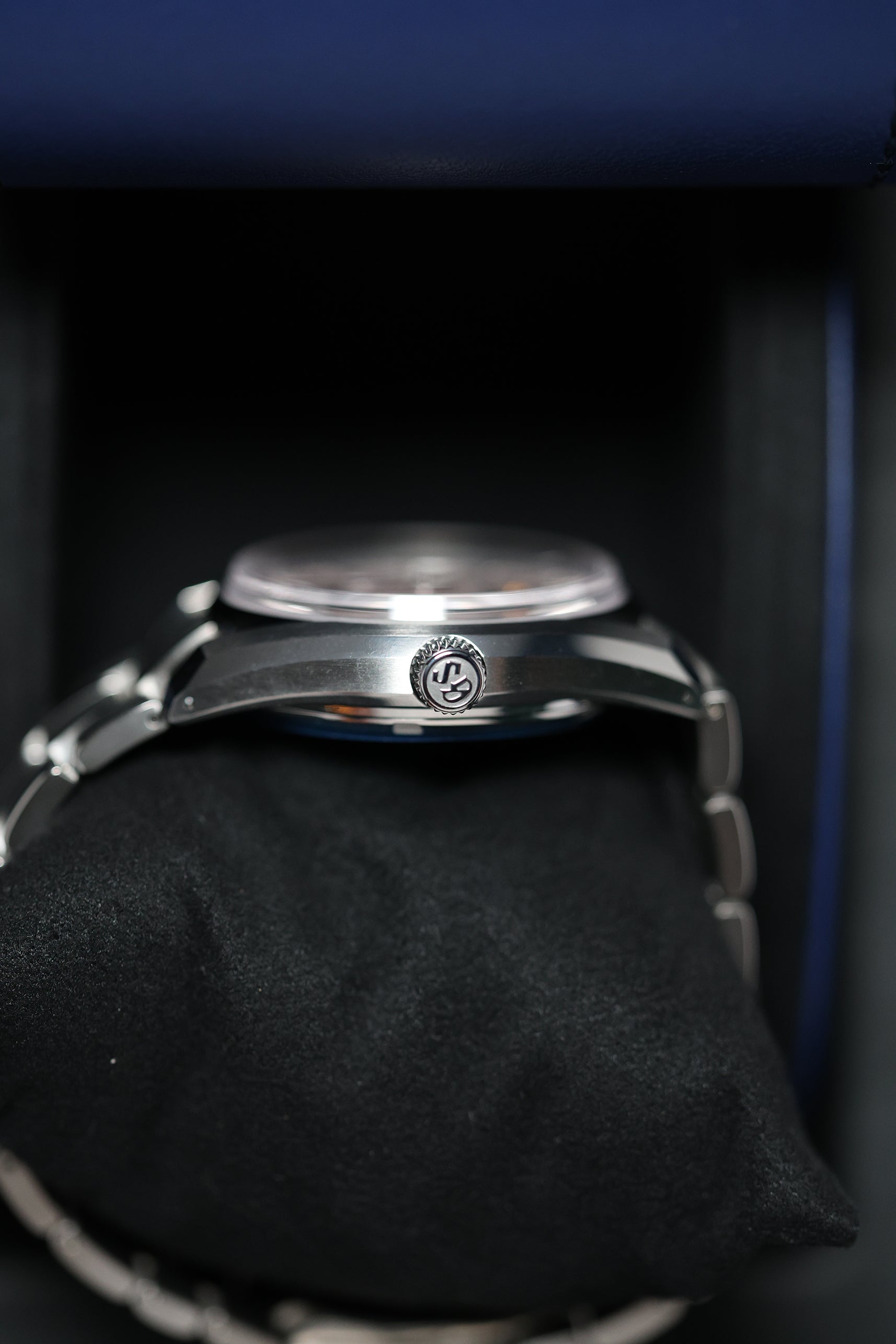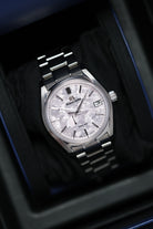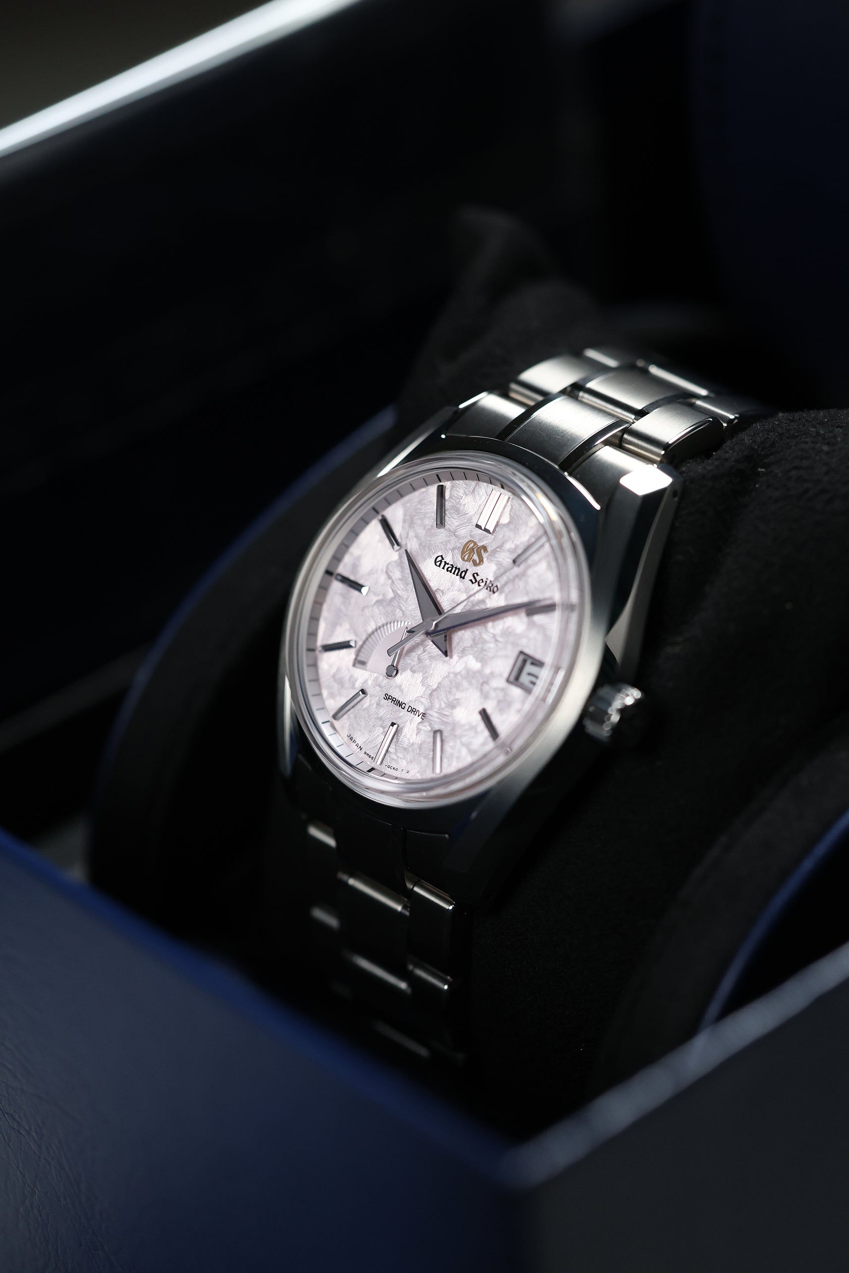 The watch is crafted in high-intensity titanium, which is significantly lighter than steel, offering a comfortable yet purposeful 40mm presence on the wrist. This material is finished with the meticulous Zaratsu polishing, creating mirror-like surfaces and razor-sharp case lines that are hallmarks of Grand Seiko's commitment to flawless finishing.