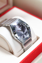 Driven by the Omega Calibre 4061, a high-precision quartz movement, this timepiece is engineered for the modern woman who values reliability and "grab-and-go" convenience. The movement is housed behind a solid caseback embossed with the Constellation Observatory medallion, a tribute to Omega’s historic achievements in precision timing at the Geneva Observatory. With its scratch-resistant sapphire crystal and elegant 28mm proportions, the Purple Blossom is a versatile masterpiece that effortlessly bridges the gap between a precision timekeeper and a fine jewelry accessory.