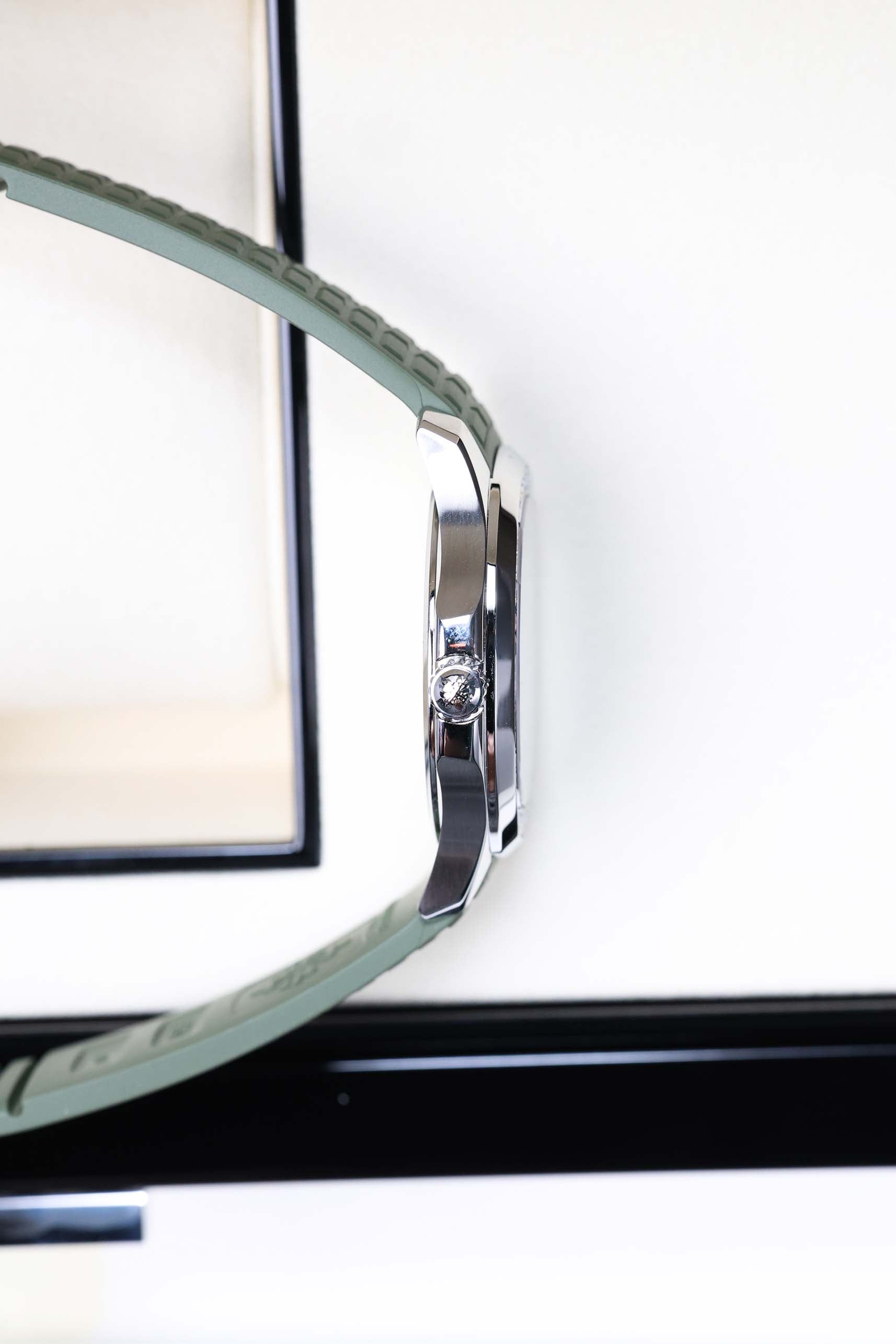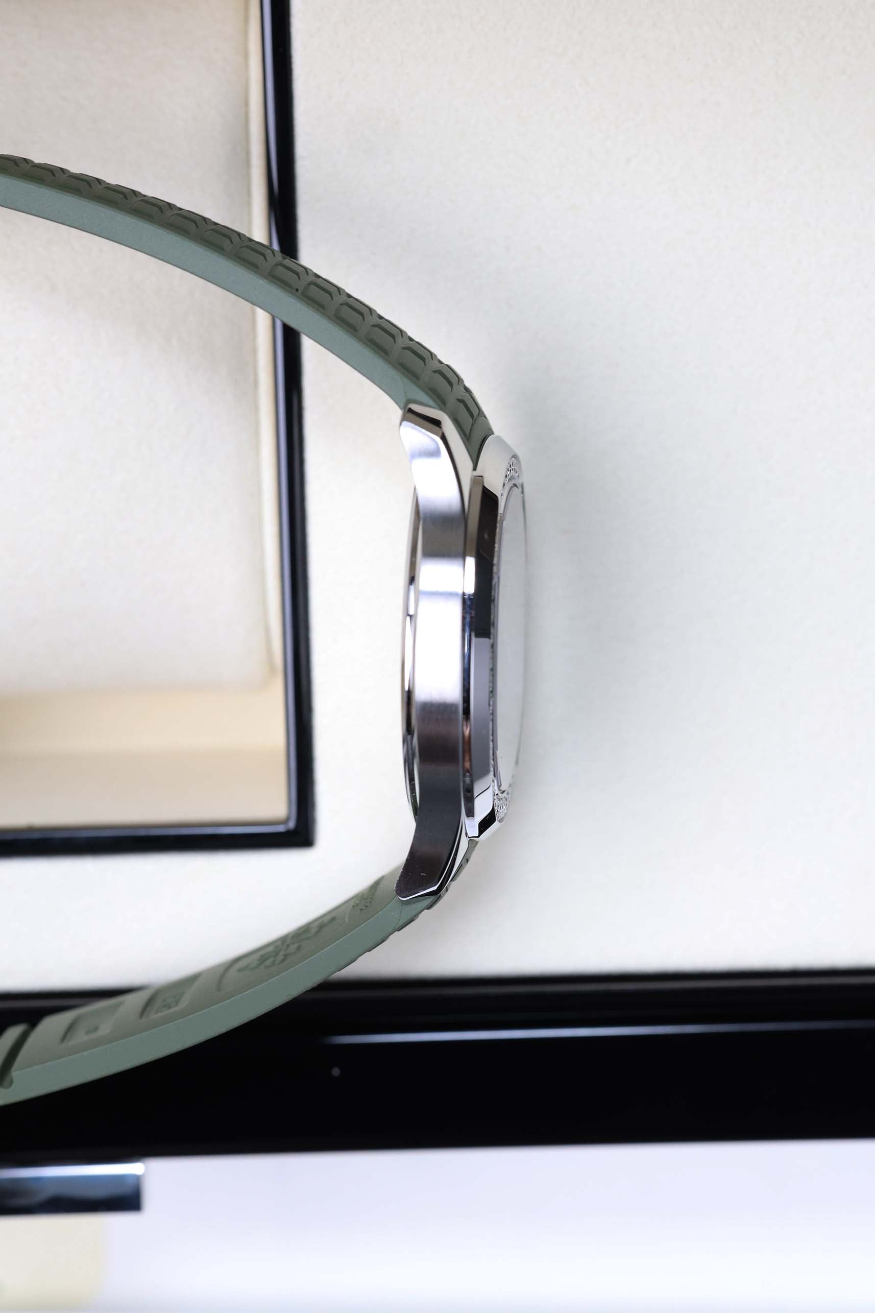 Powering the 5267/200A-011 is the Patek Philippe Caliber E 23-250 S C, a high-precision quartz movement. While some purists may long for a rotor, the quartz caliber allows for a remarkably slim 7.9mm profile and "set-and-forget" reliability—perfect for a lifestyle that moves fast. The watch is paired with a matching khaki green composite strap, which is virtually indestructible and resistant to salt water, UV radiation, and friction. With 120 meters of water resistance and a screw-down crown, the Aquanaut Luce isn't just a pretty face; it’s a robust, life-proof companion for the adventurous collector.