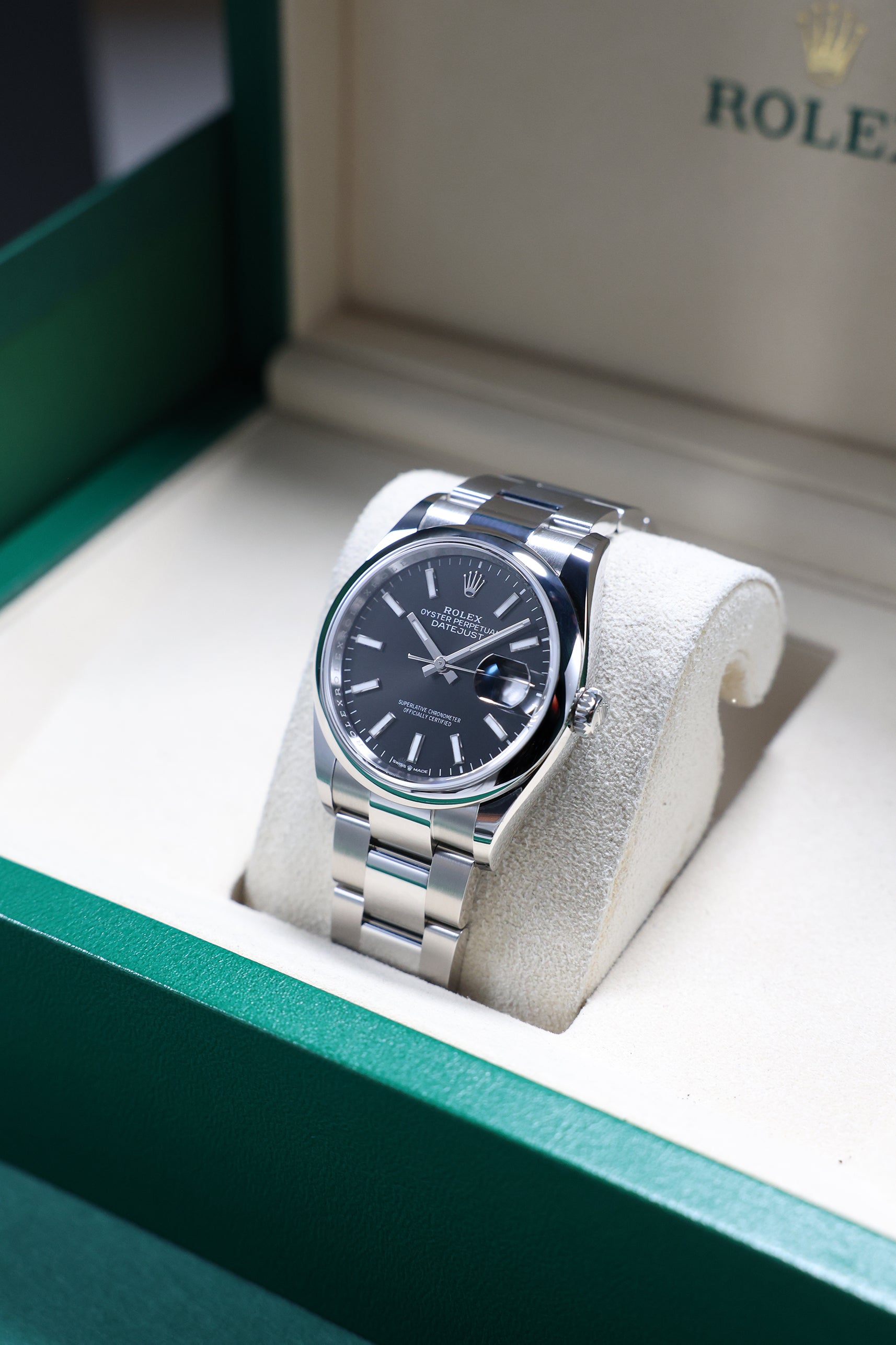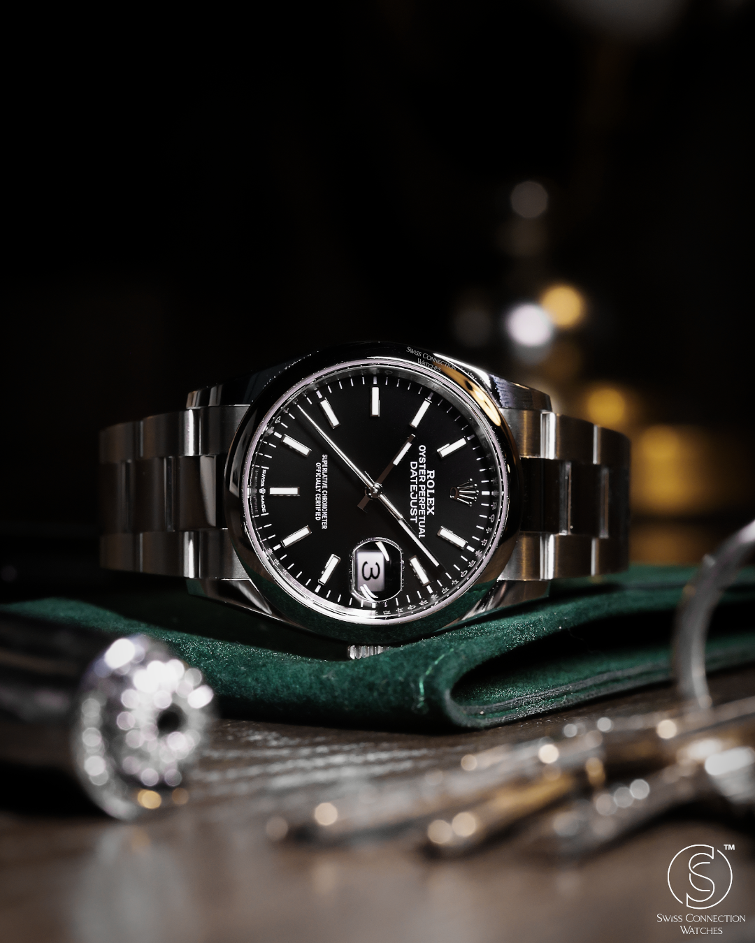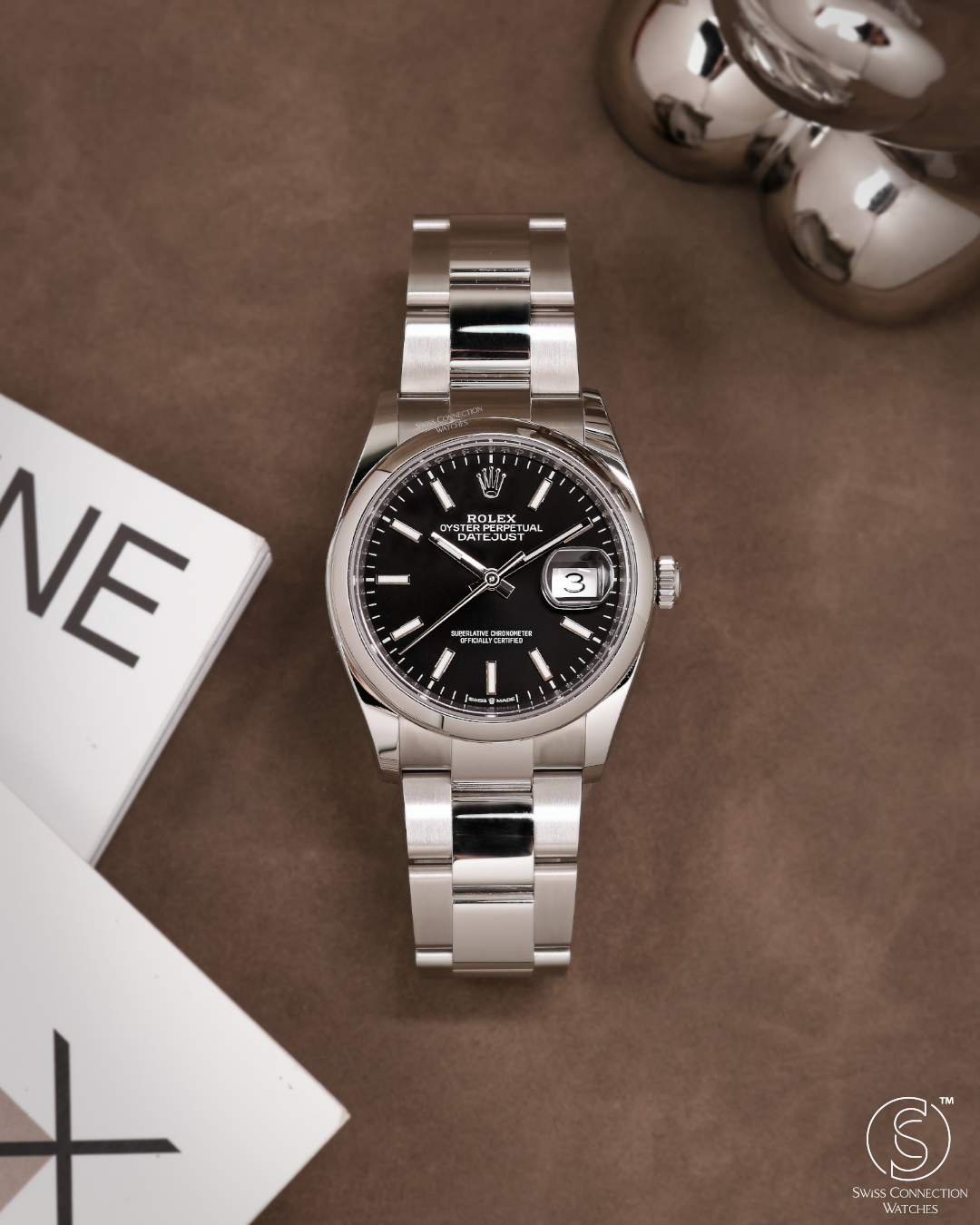 At its heart, the watch is powered by Rolex’s latest generation in-house Calibre 3235, which boasts an impressive 70-hour power reserve. This mechanism ensures superior precision, durability, and reliability, all certified as a Superlative Chronometer. With a robust 100-meter water resistance, the Datejust 36 is built for dependable everyday performance. Paired with either the sporty three-link Oyster bracelet or the more refined Jubilee, it effortlessly transitions from formal occasions to daily elegance.