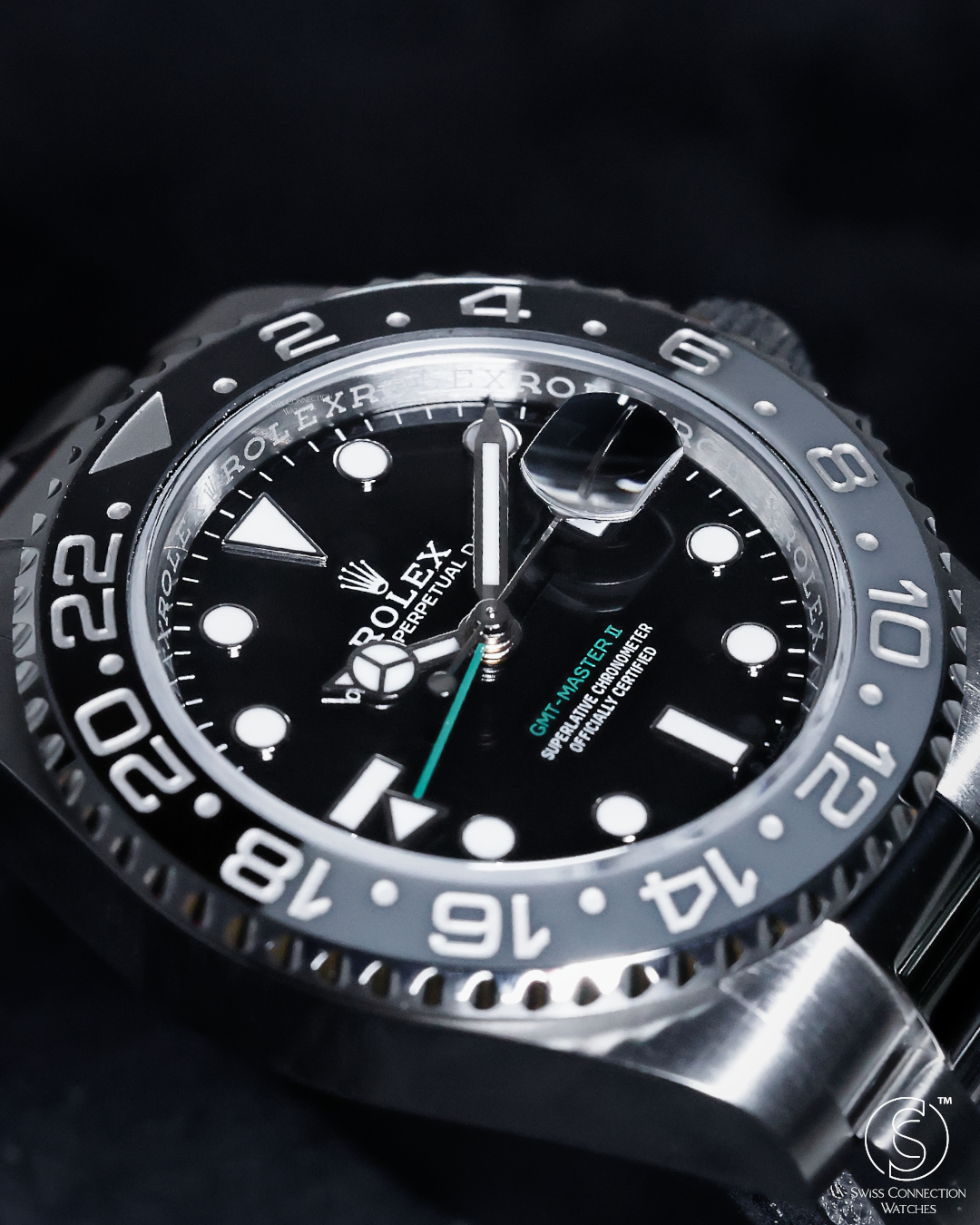 At its heart beats the renowned Rolex in-house Calibre 3285 automatic movement, a testament to Rolex's engineering excellence. This movement delivers exceptional precision and reliability, featuring the efficient Chronergy escapement and a substantial 70-hour power reserve. The Rolex GMT-Master II "Bruce Wayne" on the Oyster bracelet is a compelling blend of robust functionality and understated style, making it a perfect, reliable companion for the modern global explorer.
