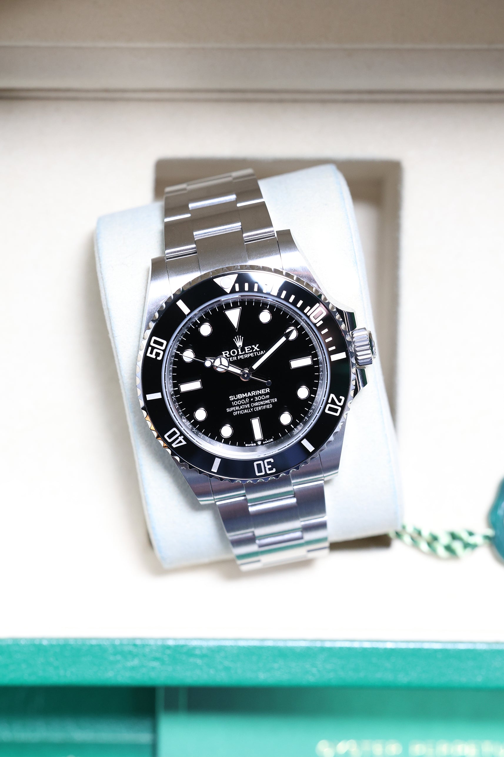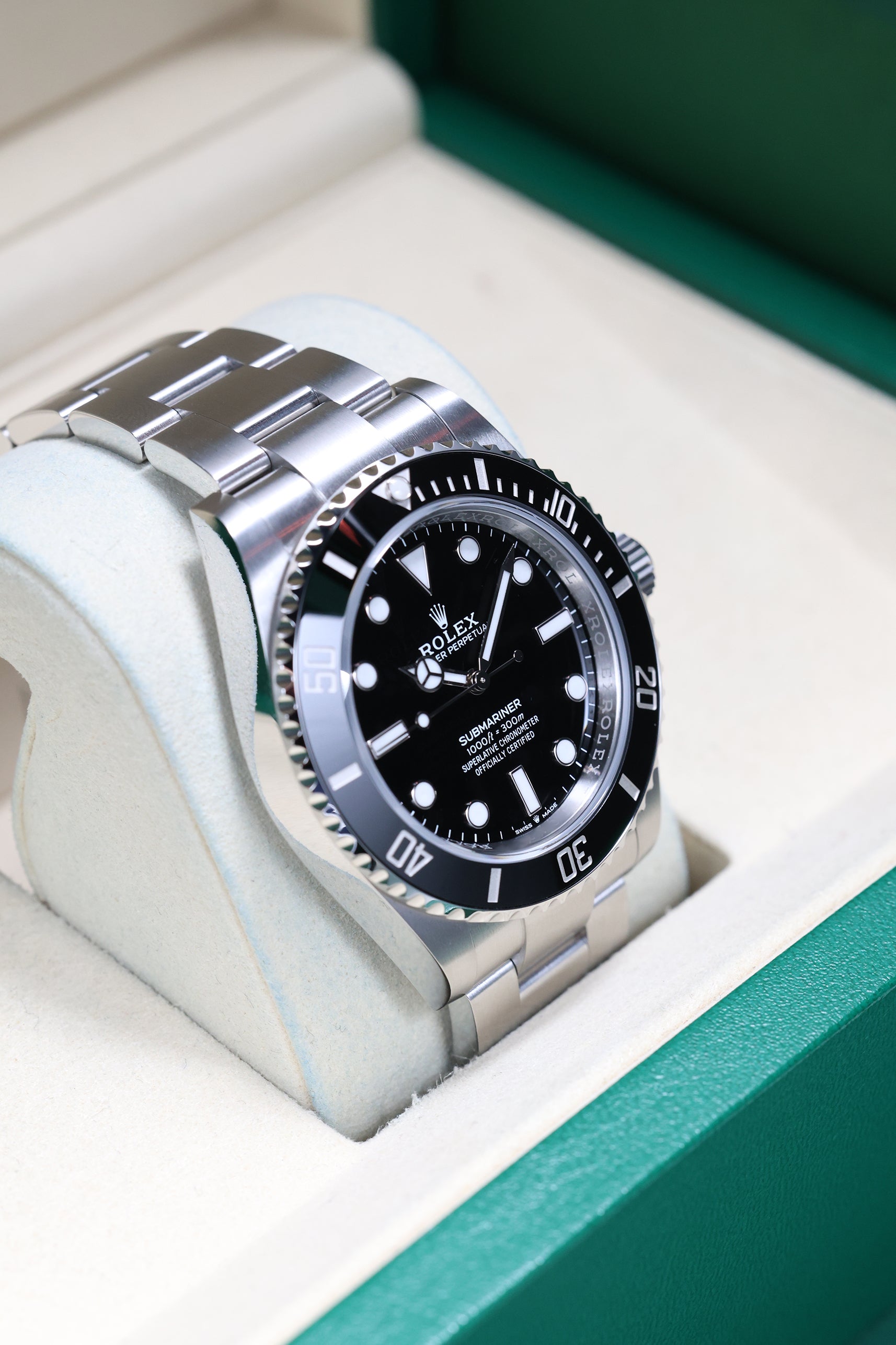 Beneath the surface, the in-house Calibre 3230 represents Rolex’s latest advancements in movement technology. While unseen, this movement boasts significantly improved power reserve, enhanced precision, and superior resistance to shocks and magnetic fields. The Submariner No-Date 124060 is a quintessential example of Rolex's dedication to refining a legend, ensuring it remains at the forefront of both style and performance in the world of luxury sports watches.
