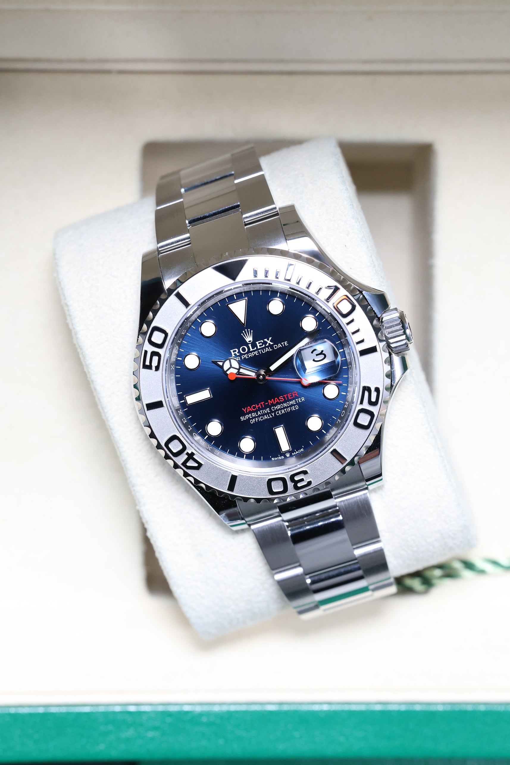 Powering the Yacht-Master 126622 is Rolex’s advanced in-house Calibre 3235, a self-winding mechanical movement that sets a high standard for precision, reliability, and power efficiency. This new-generation movement boasts a Parachrom hairspring for superior resistance to shocks and temperature variations, as well as a high-efficiency Chronergy escapement. With an impressive 70-hour power reserve, the watch is as dependable as it is stylish, offering the wearer peace of mind during extended usage.