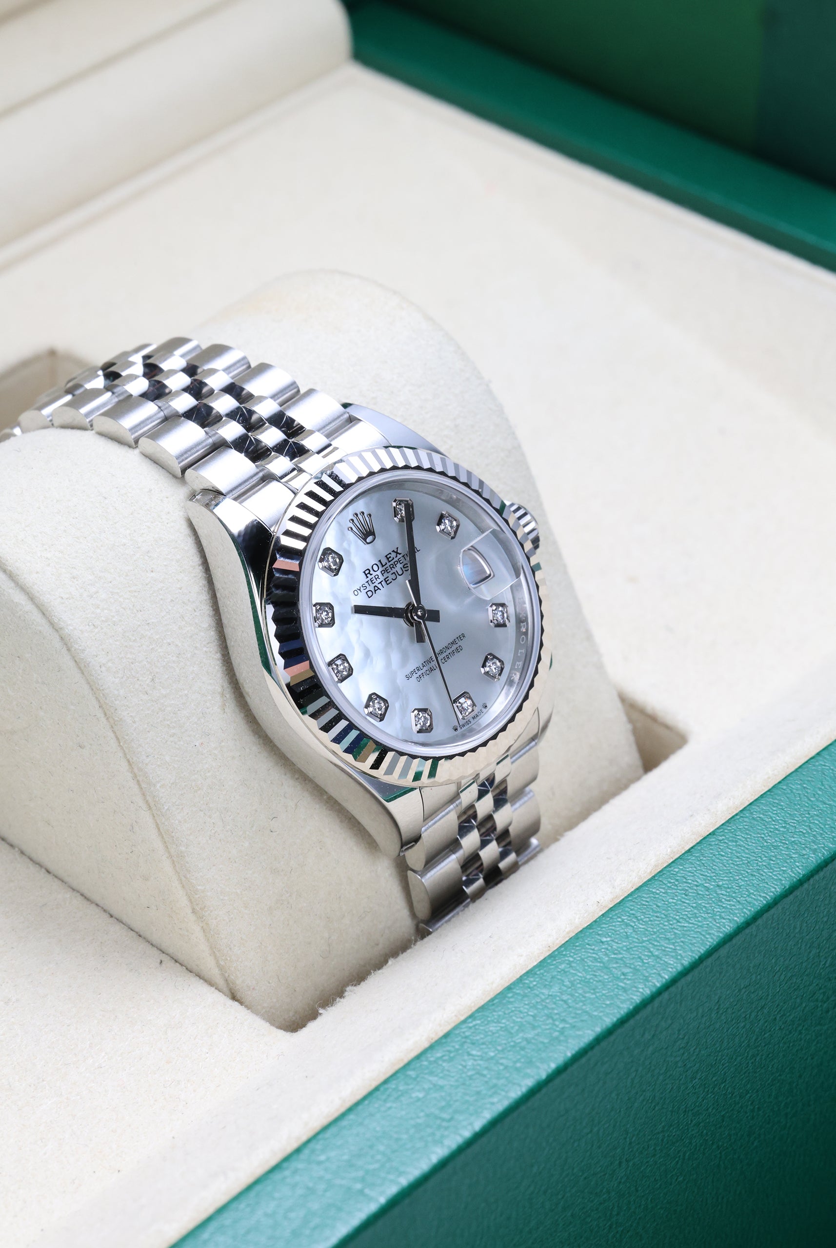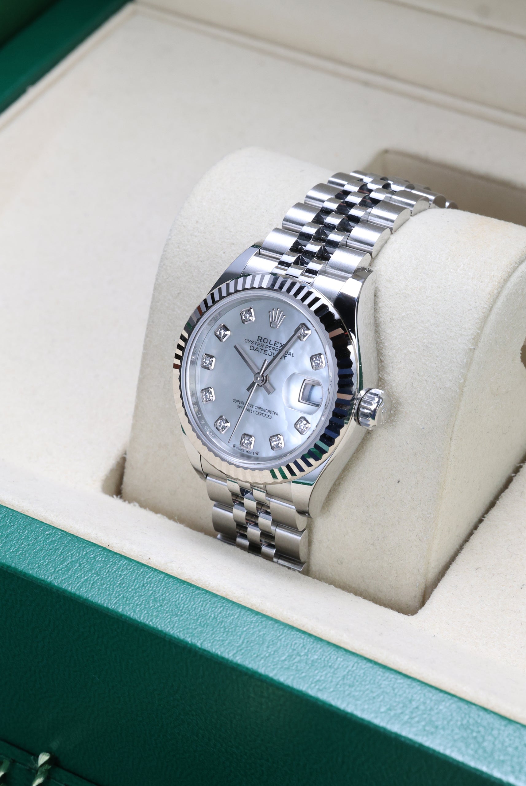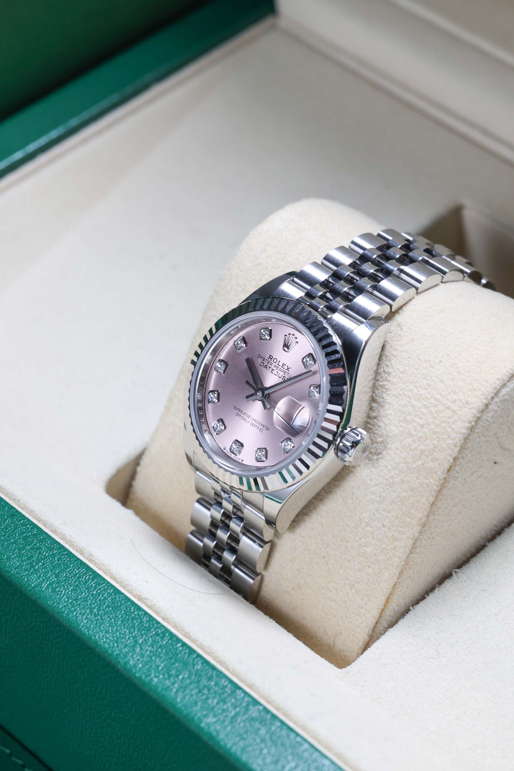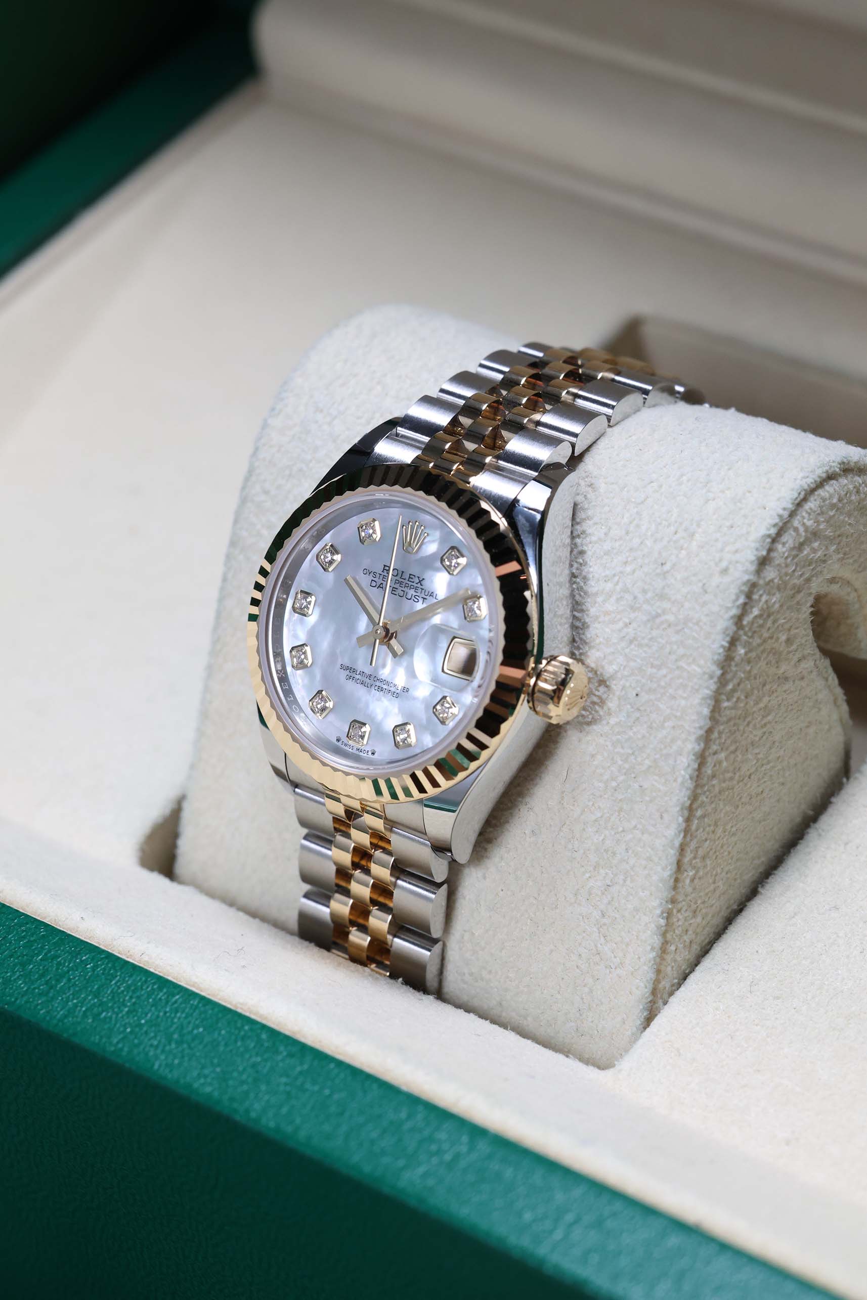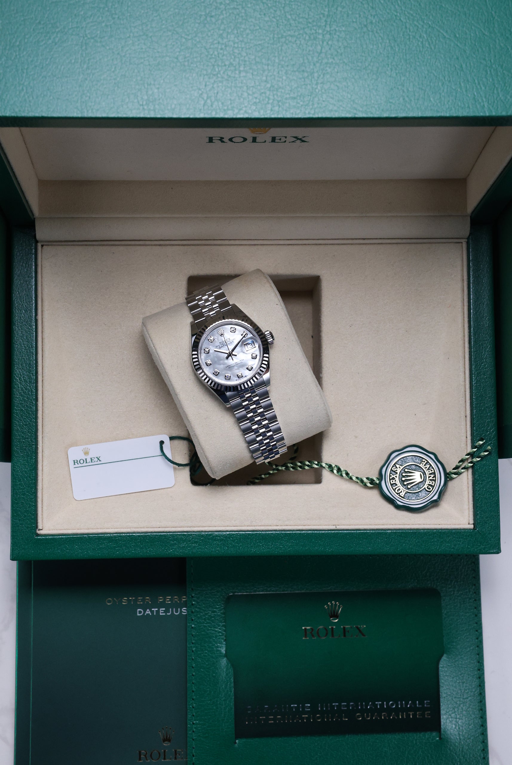 Discover our collection of brand-new timepieces, each delivered as a complete set with its original box, papers, and full manufacturer’s warranty.