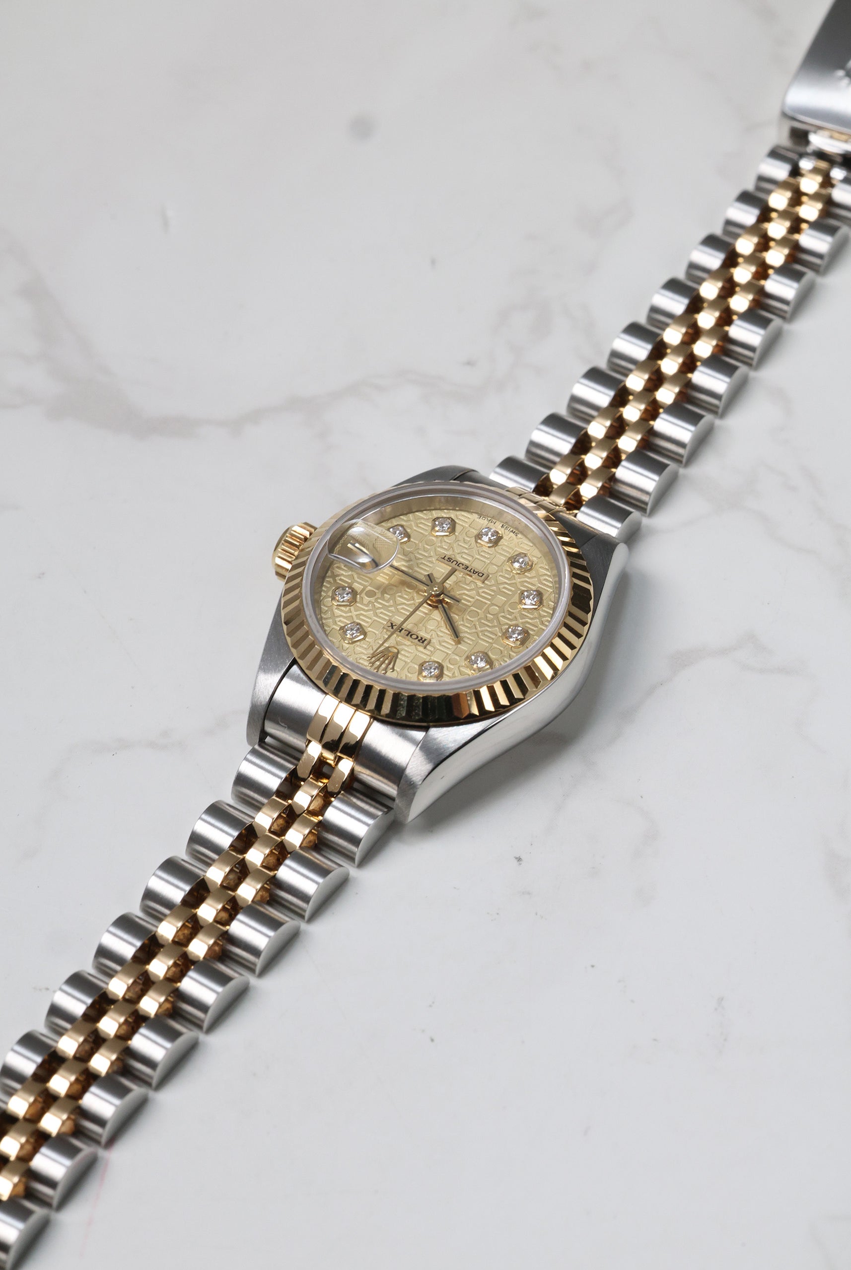 We verify reference, configuration, serial, movement, dial, case, bracelet, clasp, and key components. Every watch is checked for correctness and consistency before it is listed.
