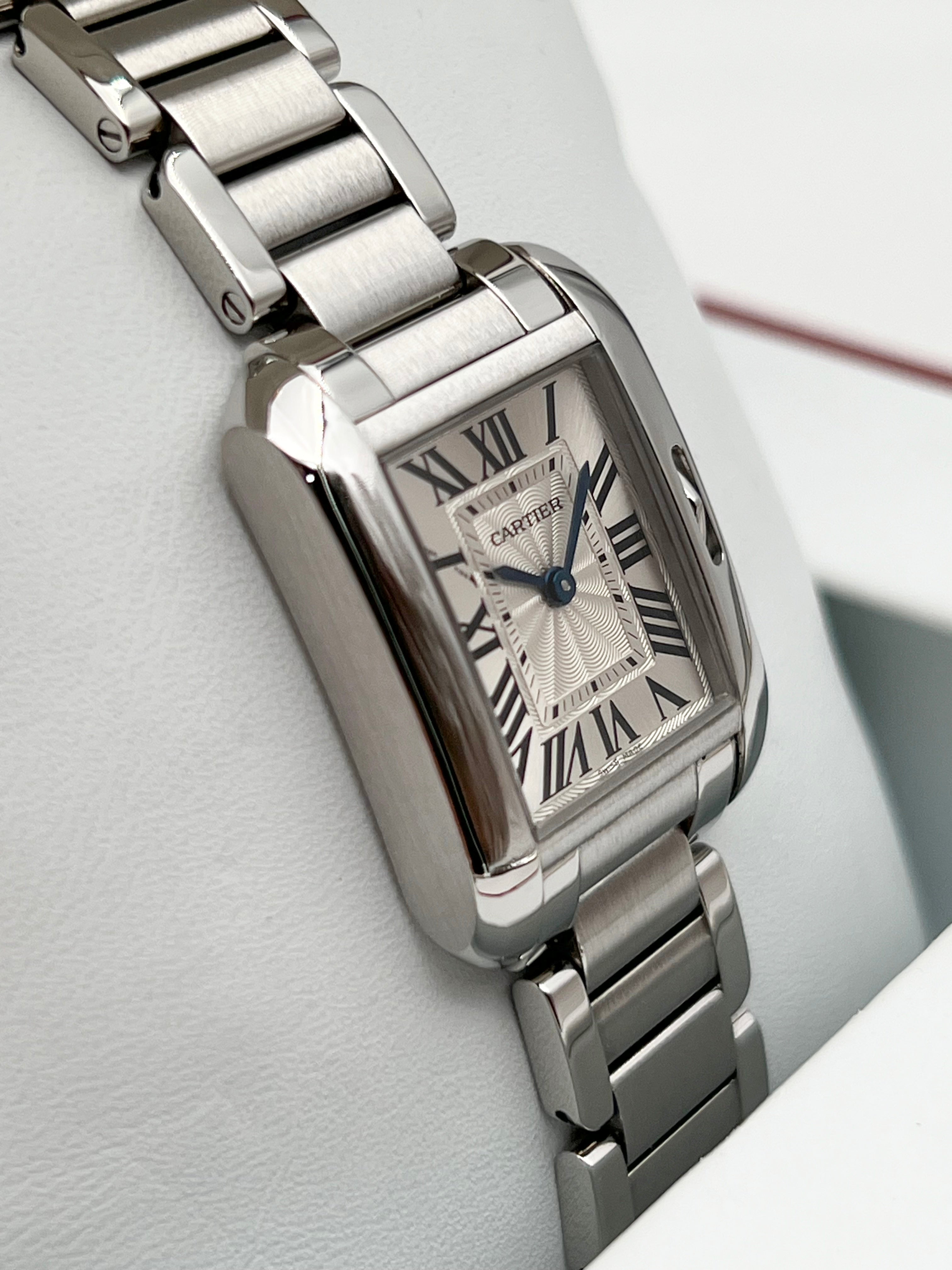 Driven by a high-precision quartz movement, the W5310022 is designed for the modern woman who values the convenience of a "grab-and-go" timepiece without sacrificing the prestige of a mechanical appearance. The watch is presented on a fully integrated stainless steel bracelet with a hidden folding clasp, offering a cohesive, armored look that is both durable and immensely elegant. The Tank Anglaise Small is a refined choice for those who seek the classic Cartier spirit but desire a more modern, architectural interpretation of the world's most enduring watch icon.
